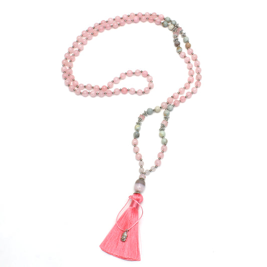 JAPA MALA BUDISTA 108 CUENTAS CUARZO ROSA