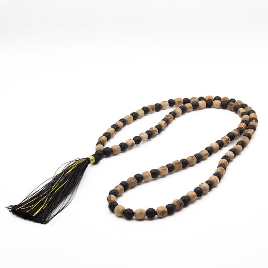 JAPA MALA BUDISTA 108 CUENTAS DE PIEDRA VOLCANICA Y TULSI