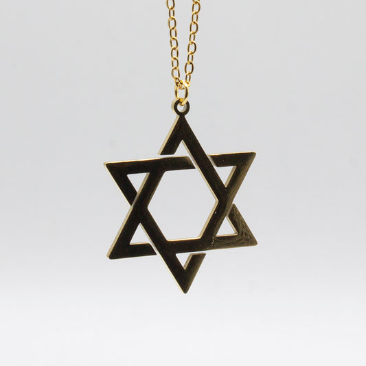 COLGANTE ESTRELLA DE DAVID EN ACERO INOX. DORADO