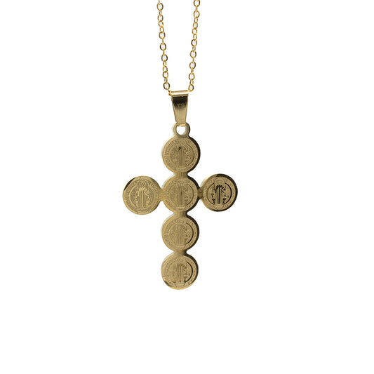 COLGANTE GRAN CRUZ DE SAN BENITO EN ACERO INOX. DORADO