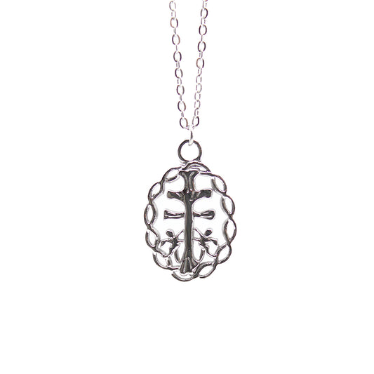 COLGANTE ARBOL DE LA VIDA Y PENDIENTES EN ACERO INOX. PLATEADO