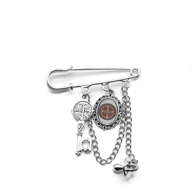 ALFILER PROTECTOR PARA BEBÉS CON AMULETO CRUZ DE SAN BENITO Y LLAVE SAGRADA