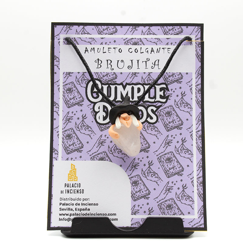 AMULETO COLGANTE BRUJITA CUMPLE DESEOS CON CRISTAL DE CUARZO