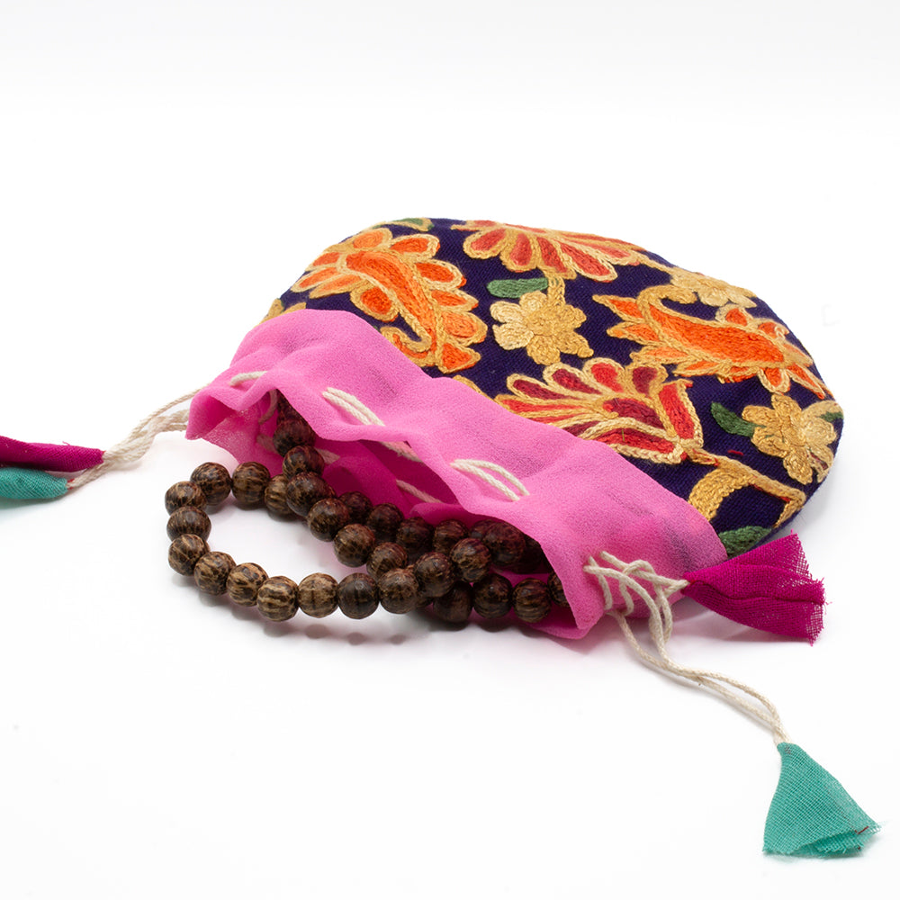 Tamaño Adecuado: La bolsa es lo suficientemente espaciosa para albergar tus malas o japa malas de forma cómoda, sin apreturas. Esto asegura que tus cuentas estén protegidas y no se enreden.