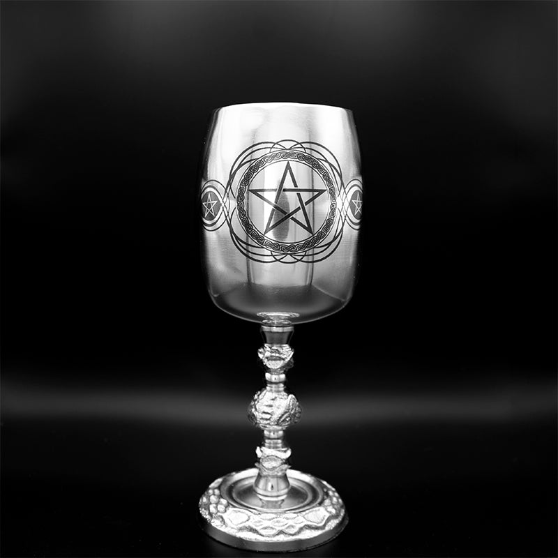 CÁLIZ ESOTÉRICO DE ACERO INOXIDABLE CON PENTAGRAMA Y BASE DE ALUMINIO