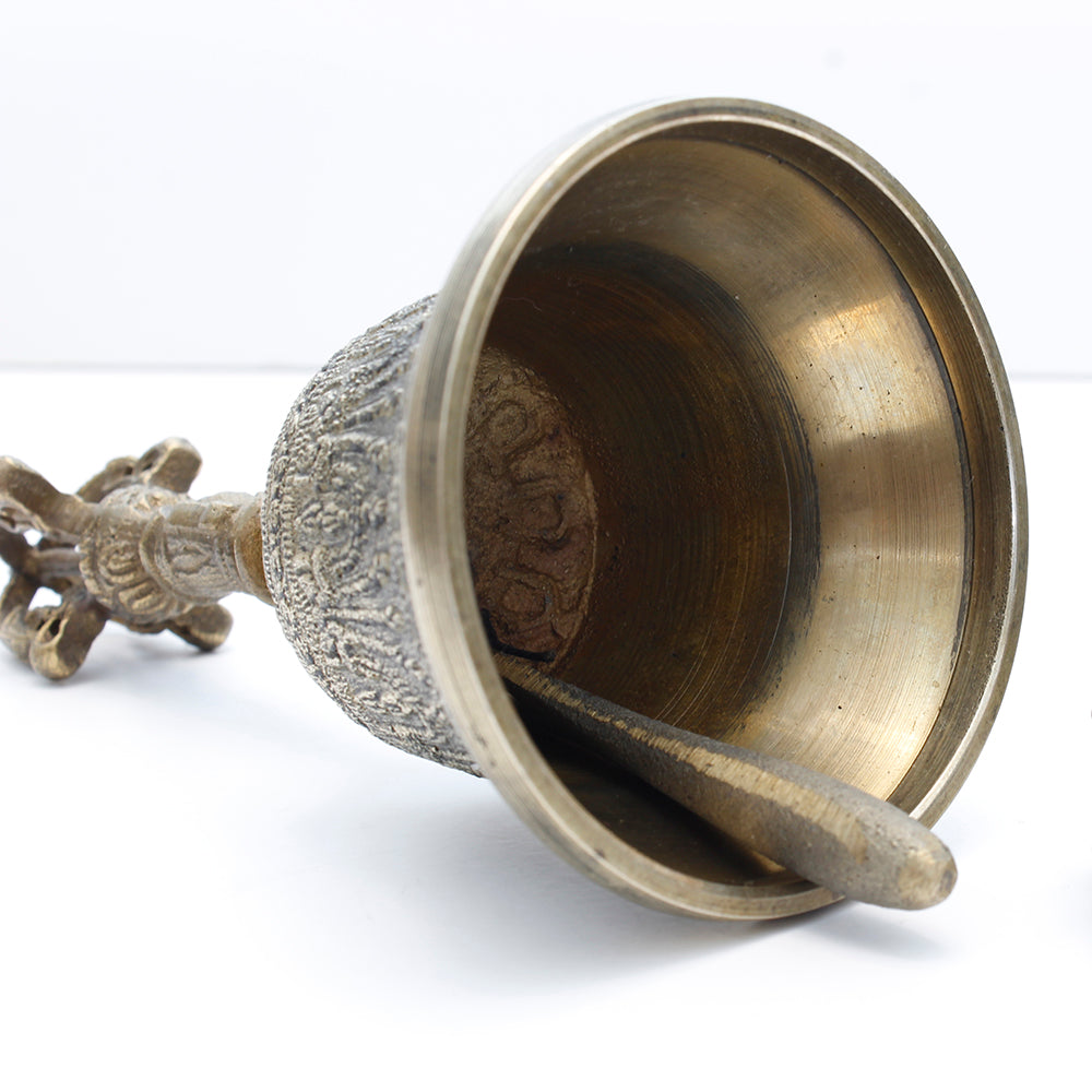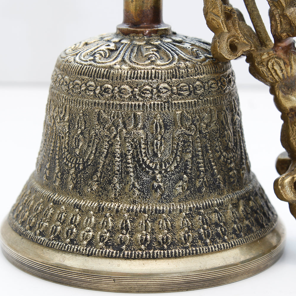Dorje y campana en bronce, con un hermoso acabado antiguo y detallada decoración.