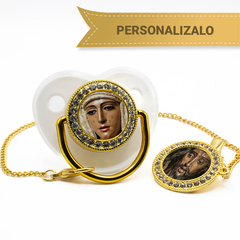 chupete personalizado, chupete amuleto, imágenes de la Virgen, símbolos religiosos, Cristo, simbología esotérica, protección espiritual, regalo religioso único.