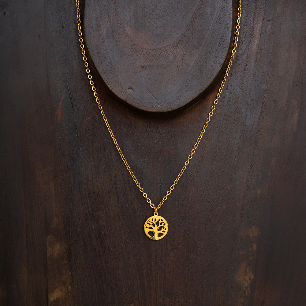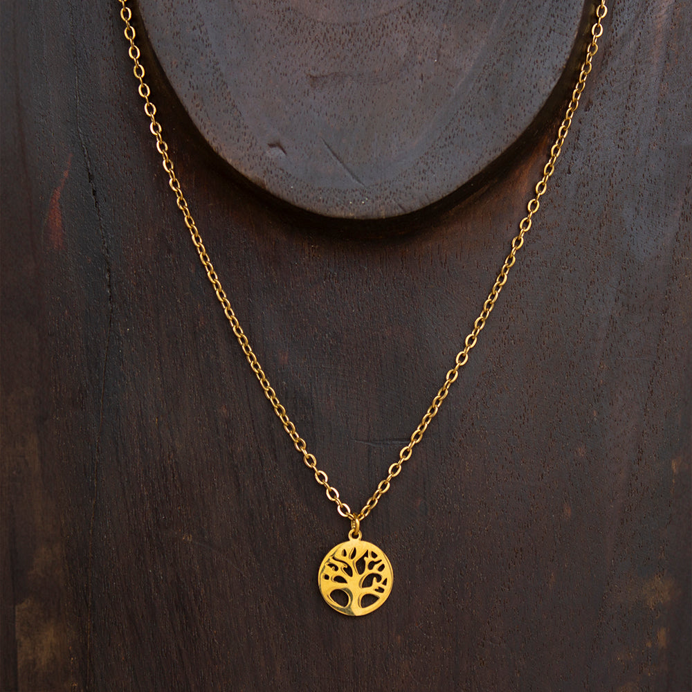 Amuleto Árbol de la Vida en acero inoxidable color dorado.