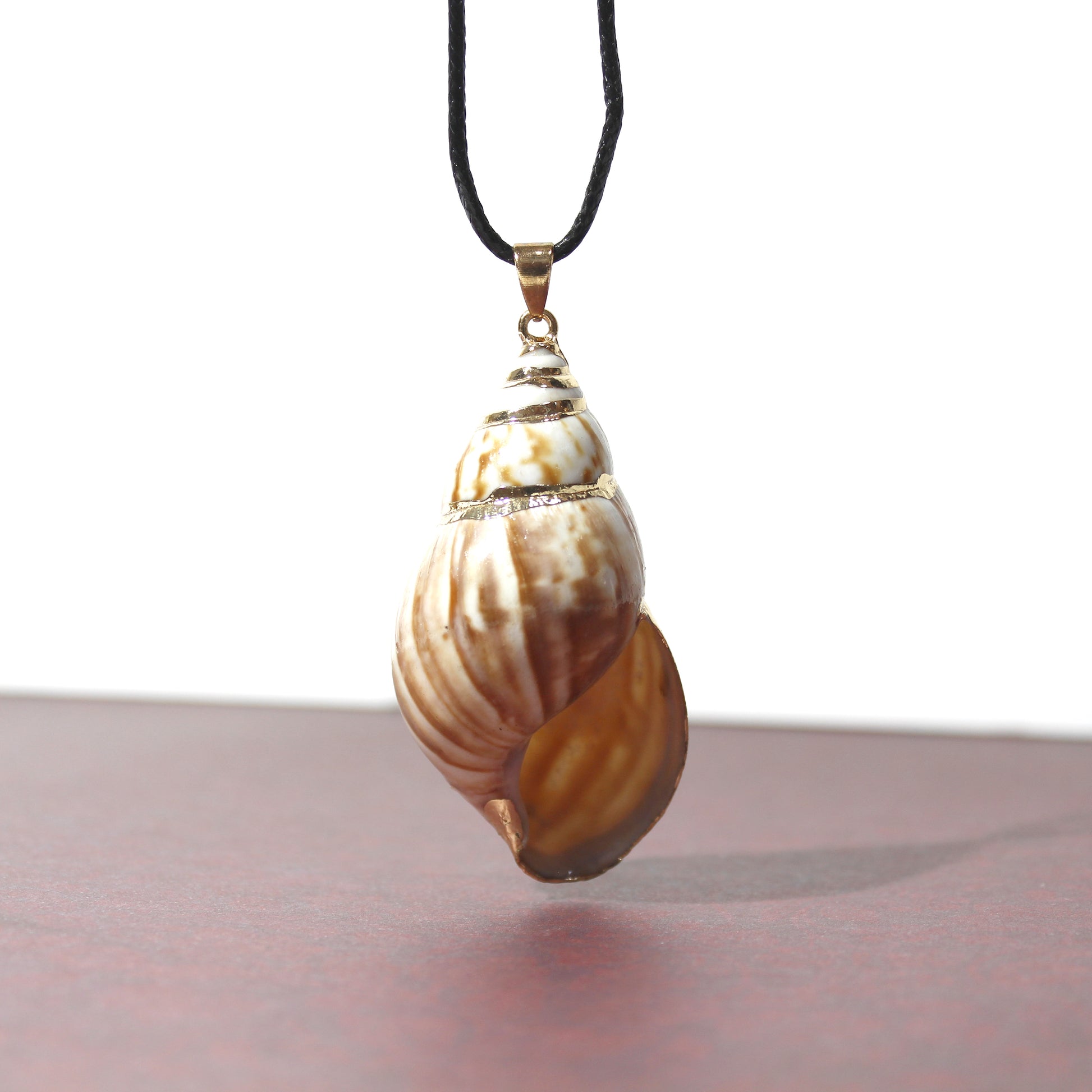El engarce de la concha en metal color dorado.