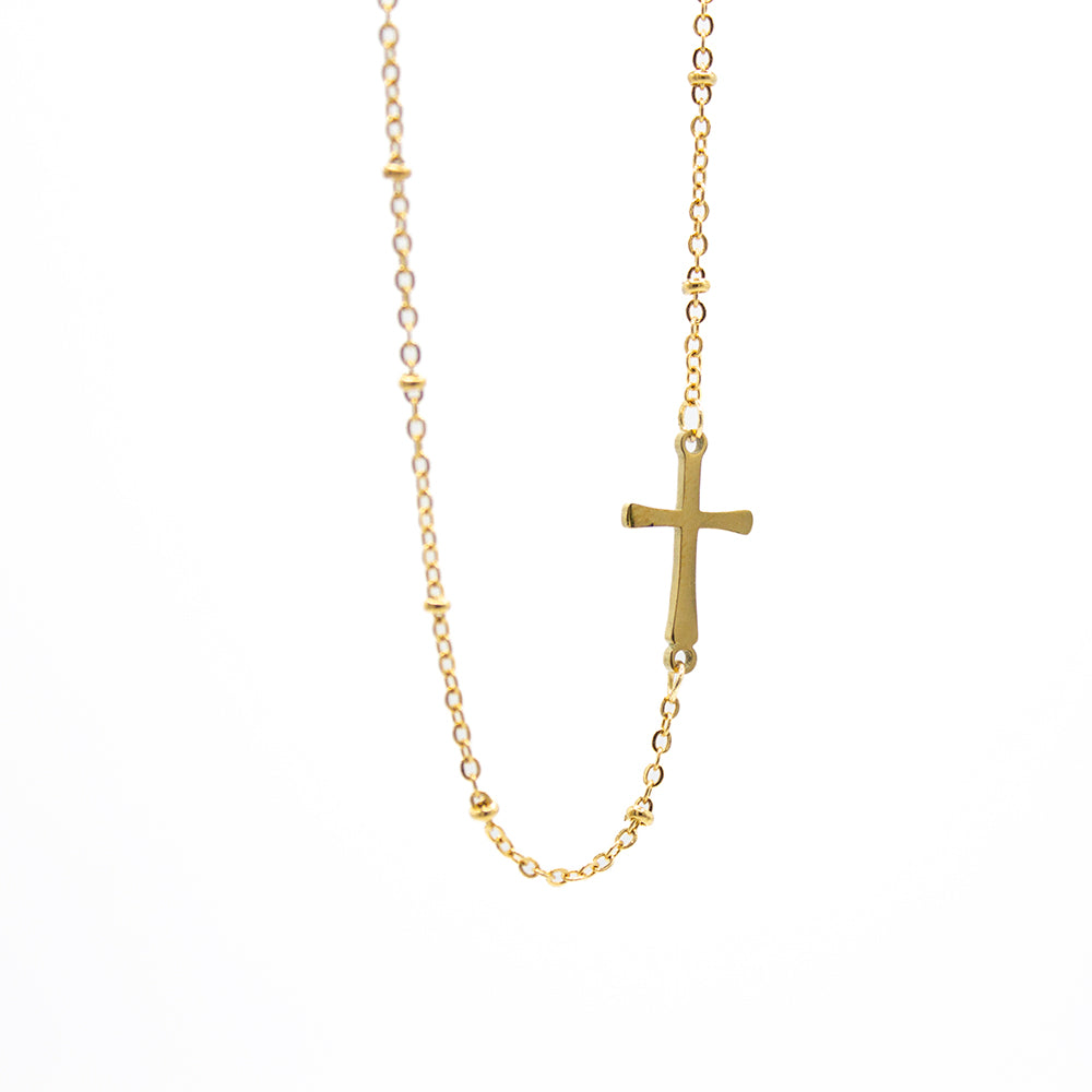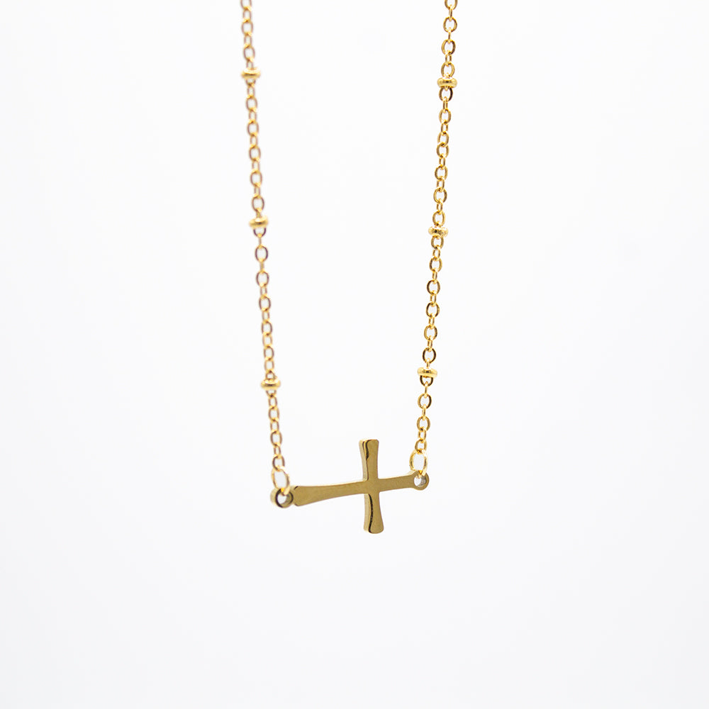 Amuleto Cruz en Acero Inoxidable color dorado.