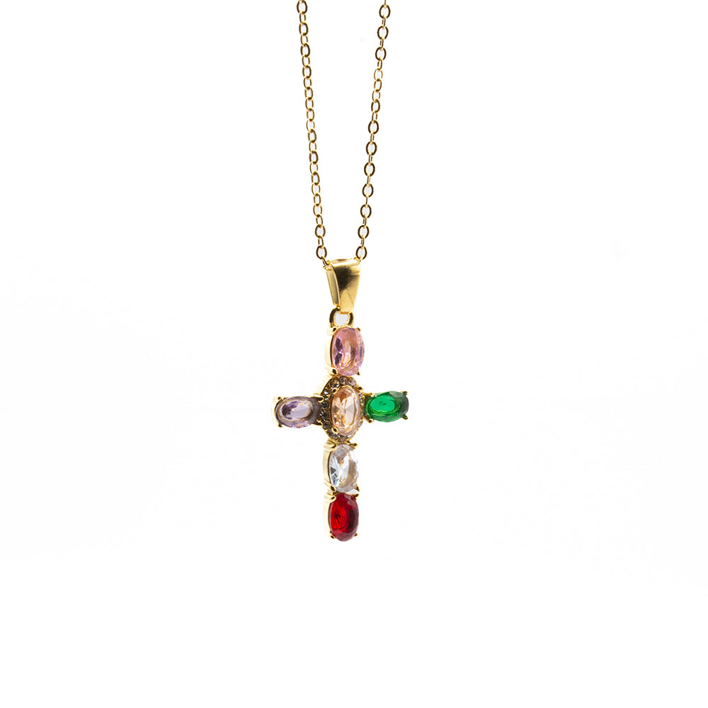 COLGANTE CRUZ CON INCRUSTACIÓN DE CRISTALES DE COLORES