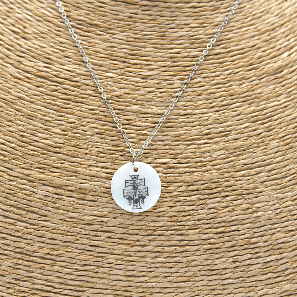 Amuleto Cruz de Caravaca gravada en Nácar 100% natural.