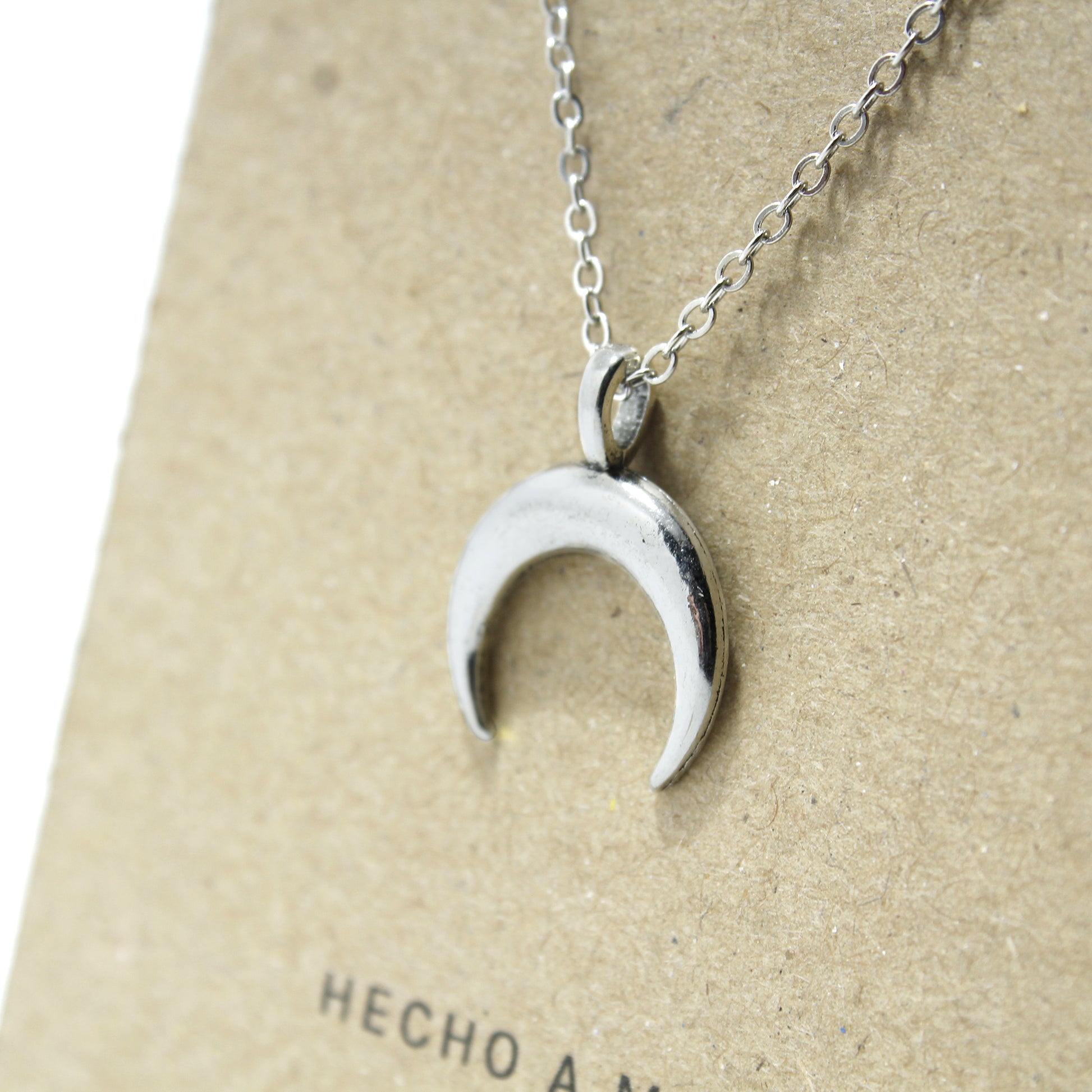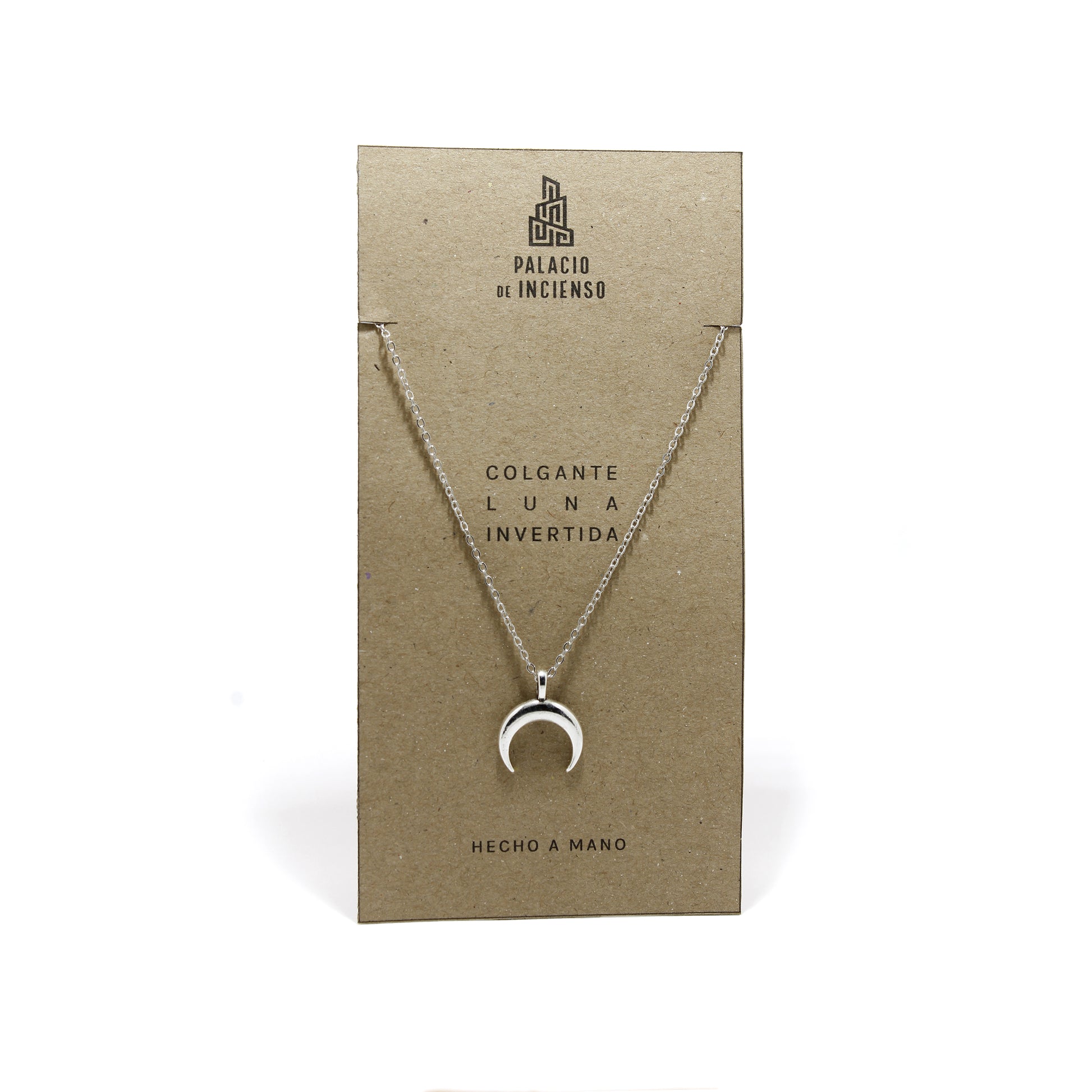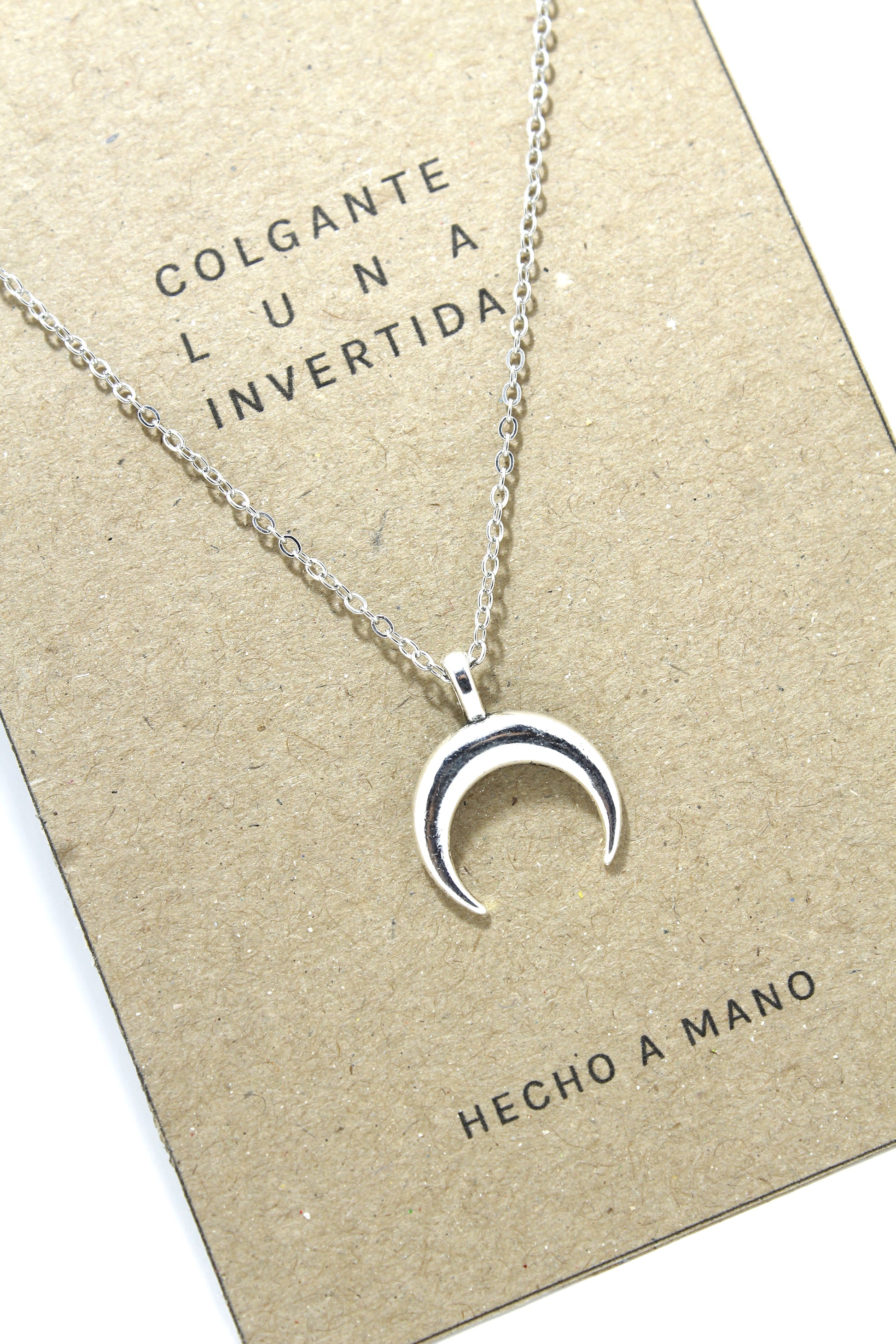 Amuleto Luna Invertida en metal color plata.