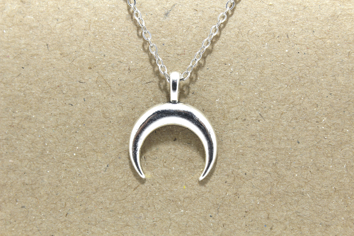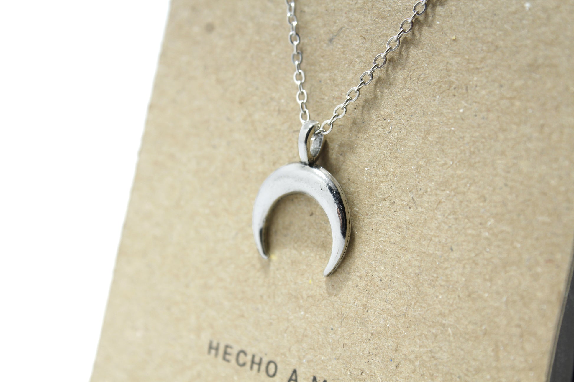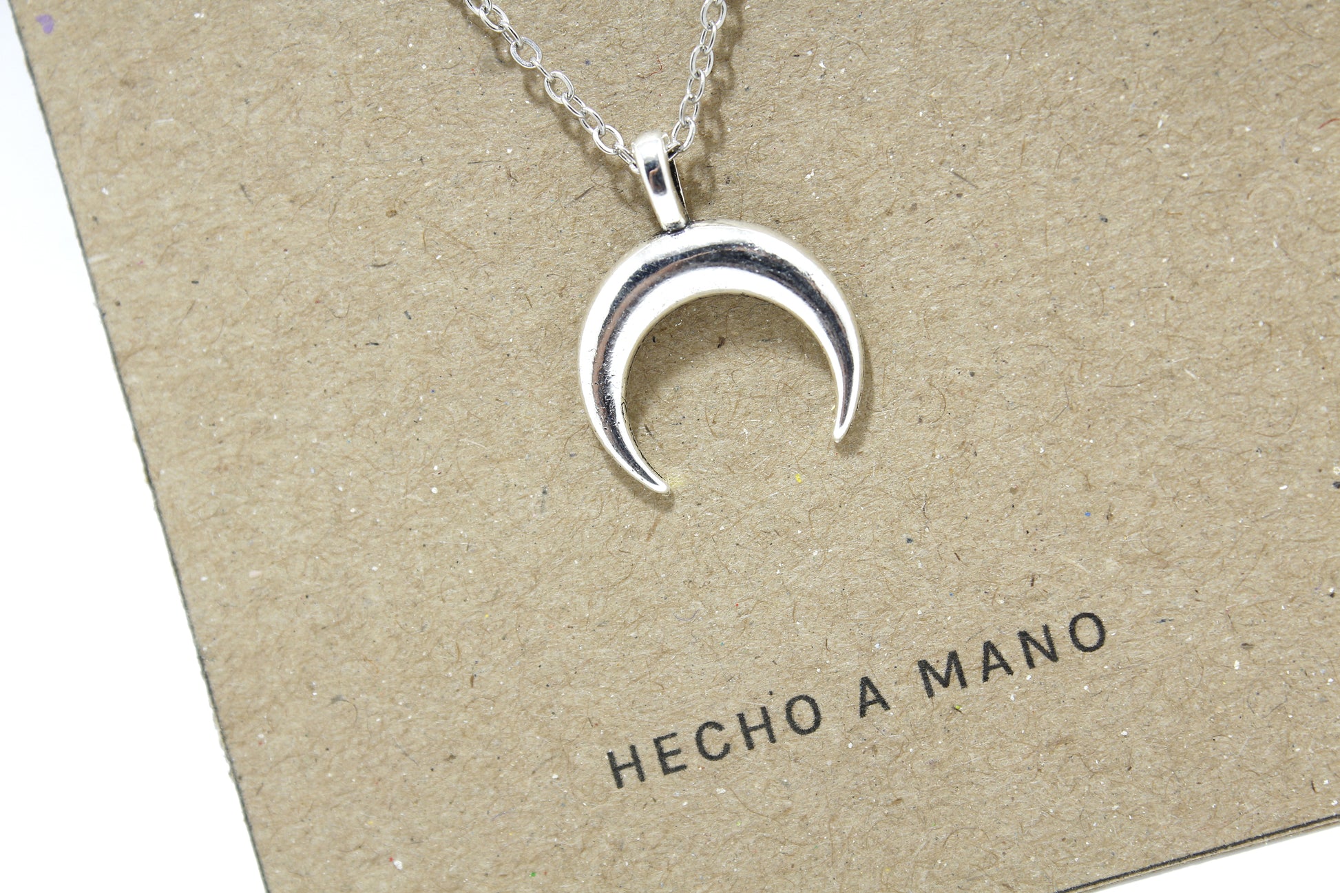 Amuleto Luna Invertida en metal color plata.