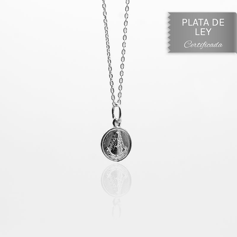 Colgante en plata de ley con imagen de la Virgen del Rocío, amuleto espiritual exclusivo.
