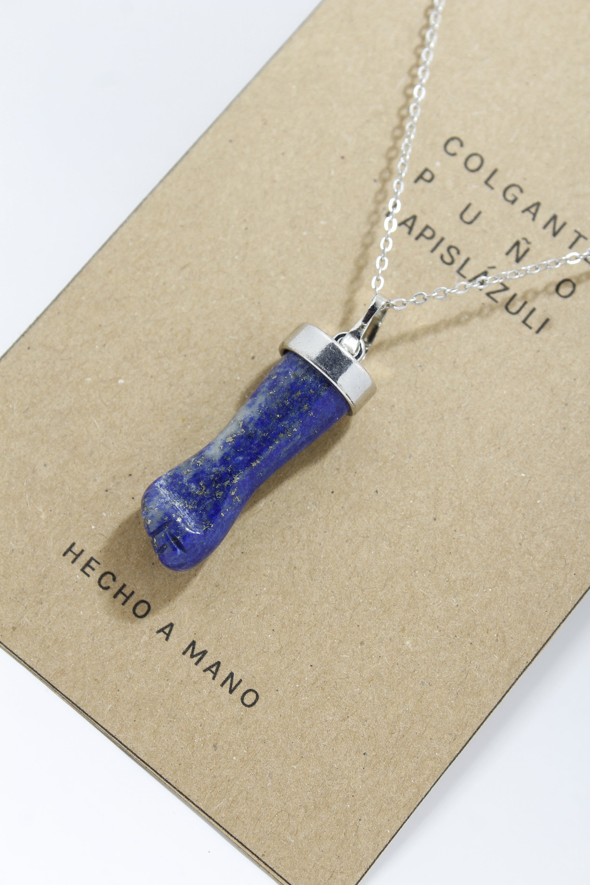 Una vez colgado en el cuello, gracias a la energía del Puño Lapislázuli, funciona como un poderoso amuleto de sanación.