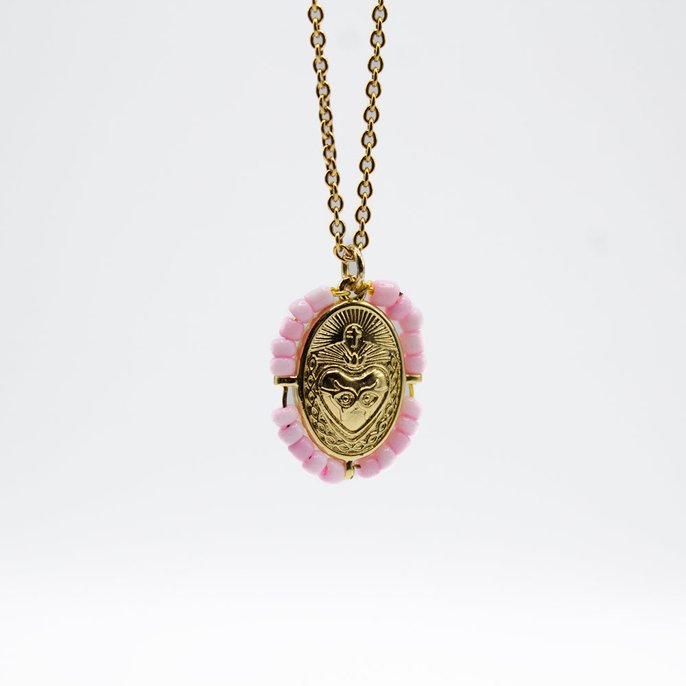 Descubre la magia y la belleza combinadas en este Colgante Sagrado Corazón con cuentas rosas. ¡Una joya única que no solo realza tu estilo, sino que también eleva tu conexión espiritual!