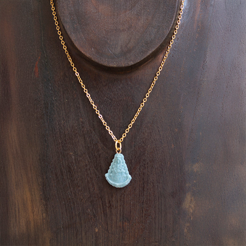 colgante Virgen del Rocío, amuleto Virgen del Rocío, colgante esotérico azul, protección espiritual, energía espiritual Virgen del Rocío