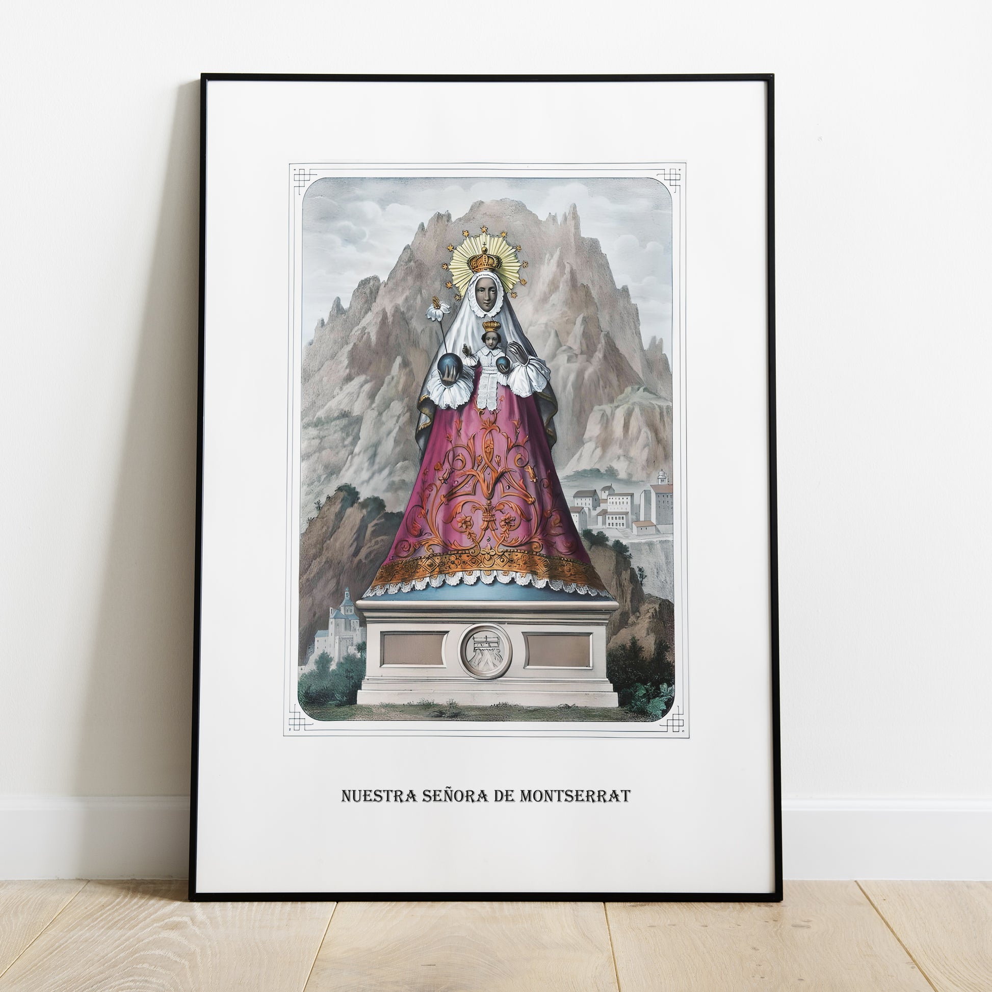 Cuadro o lamina Virgen de Montserrat. Muy bella y de gran calidad, obten el poder de La Moreneta para que te acoja con su gracia piadosa.