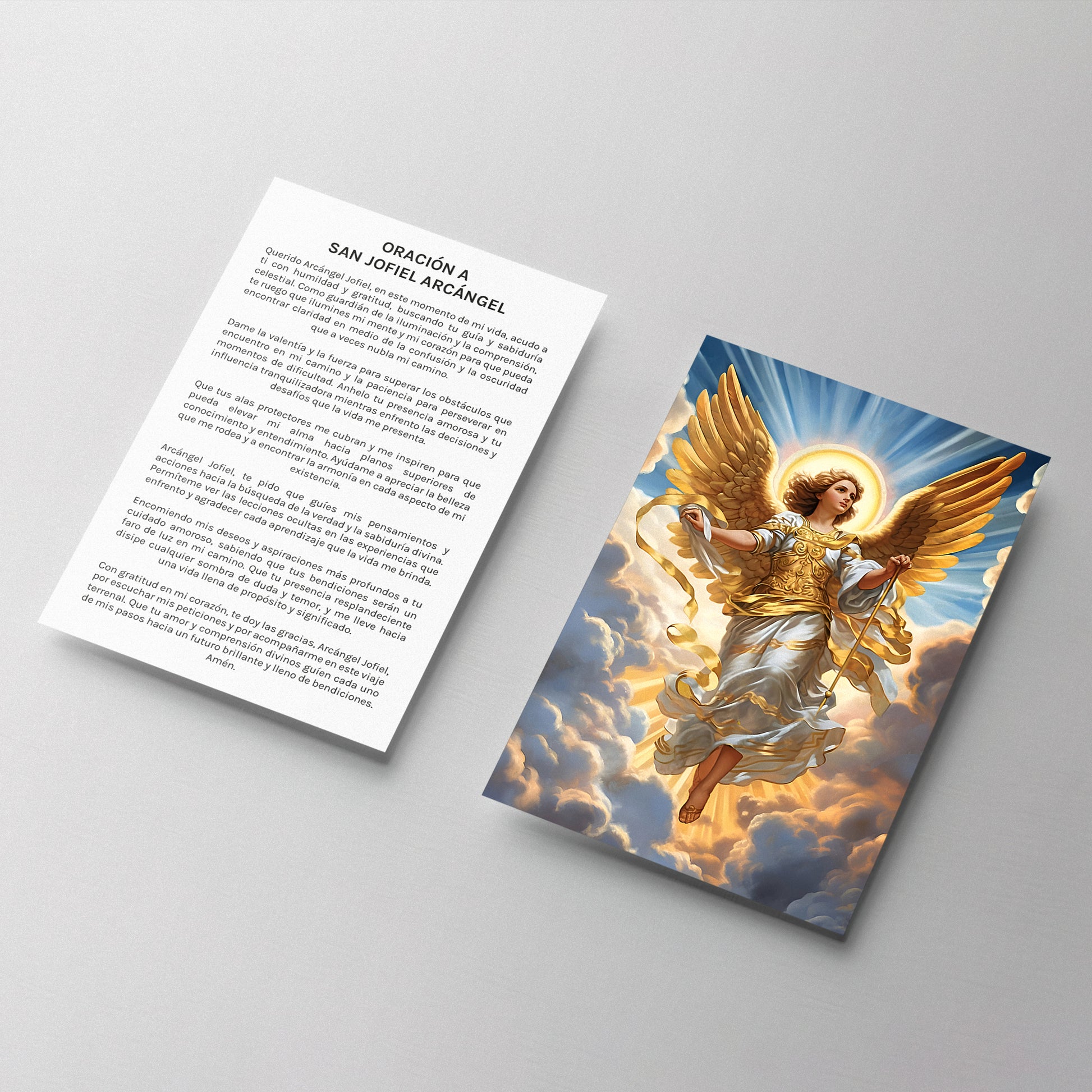 Protección y orientación: Colocar la estampa en un lugar especial de tu hogar o espacio de trabajo se cree que atrae la protección y orientación del Arcángel San Jofiel, proporcionando una sensación de seguridad y paz interior.