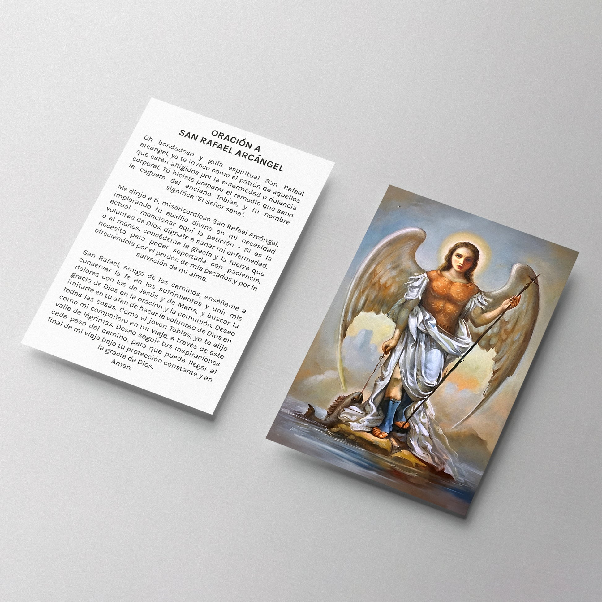 El nombre del arcángel Rafael significa "Curación de Dios". Su nombre no solo se refiere a la salud del cuerpo, sino también a la salud del alma. Su nombre, y las historias bíblicas donde es mencionado, han dado a San Rafael arcángel el papel de sanador.