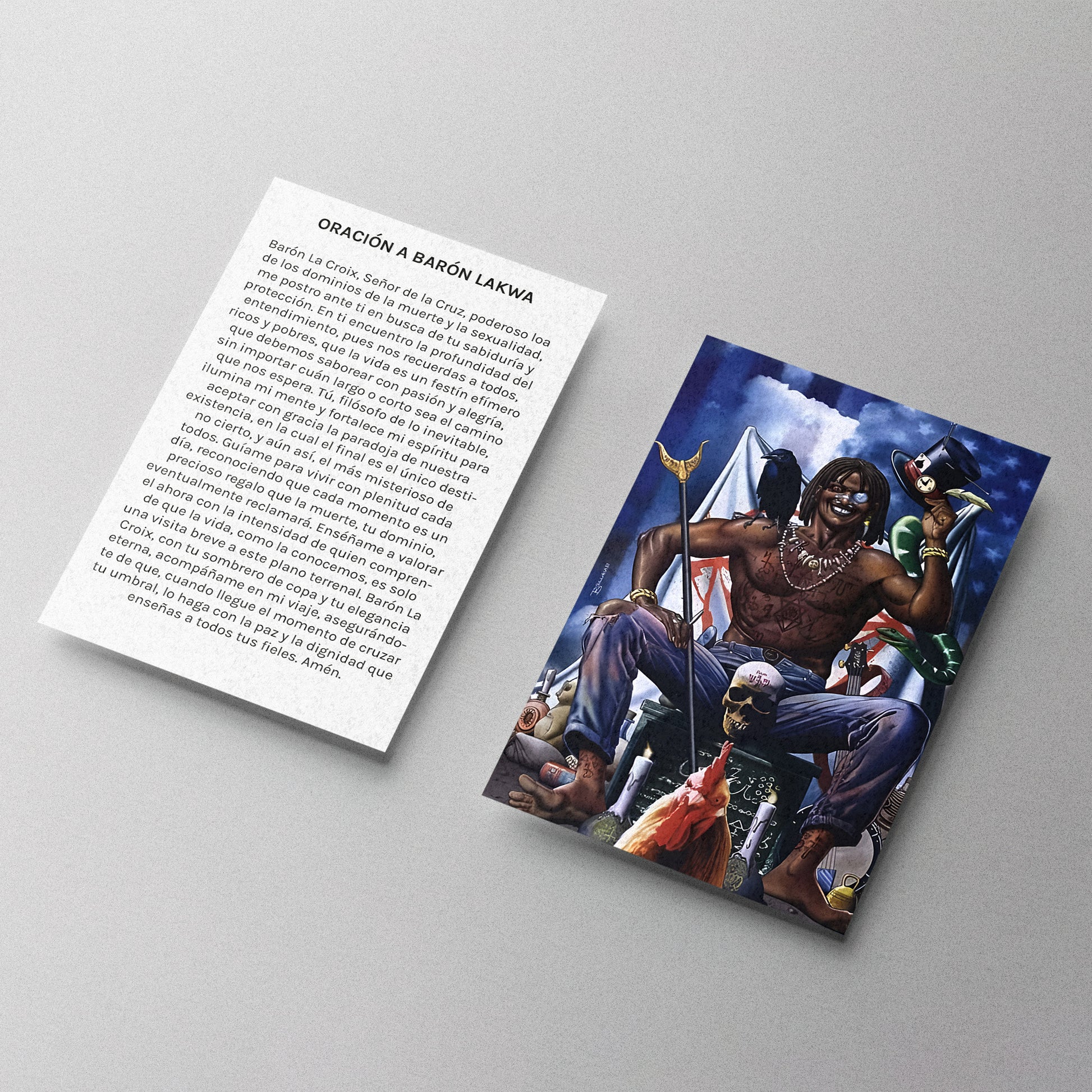 Descubre el enigmático poder de El Barón La Croix (Bawon Lakwa), una deidad venerada en la tradición vudú, simbolizando la muerte y la sexualidad. Esta estampa única captura la esencia filosófica de El Barón La Croix, quien enseña que la muerte es el gran igualador y que la vida debe disfrutarse a plenitud, sin importar las circunstancias. Es el recordatorio perfecto de que la muerte nos alcanza a todos, invitándonos a vivir intensamente cada momento.