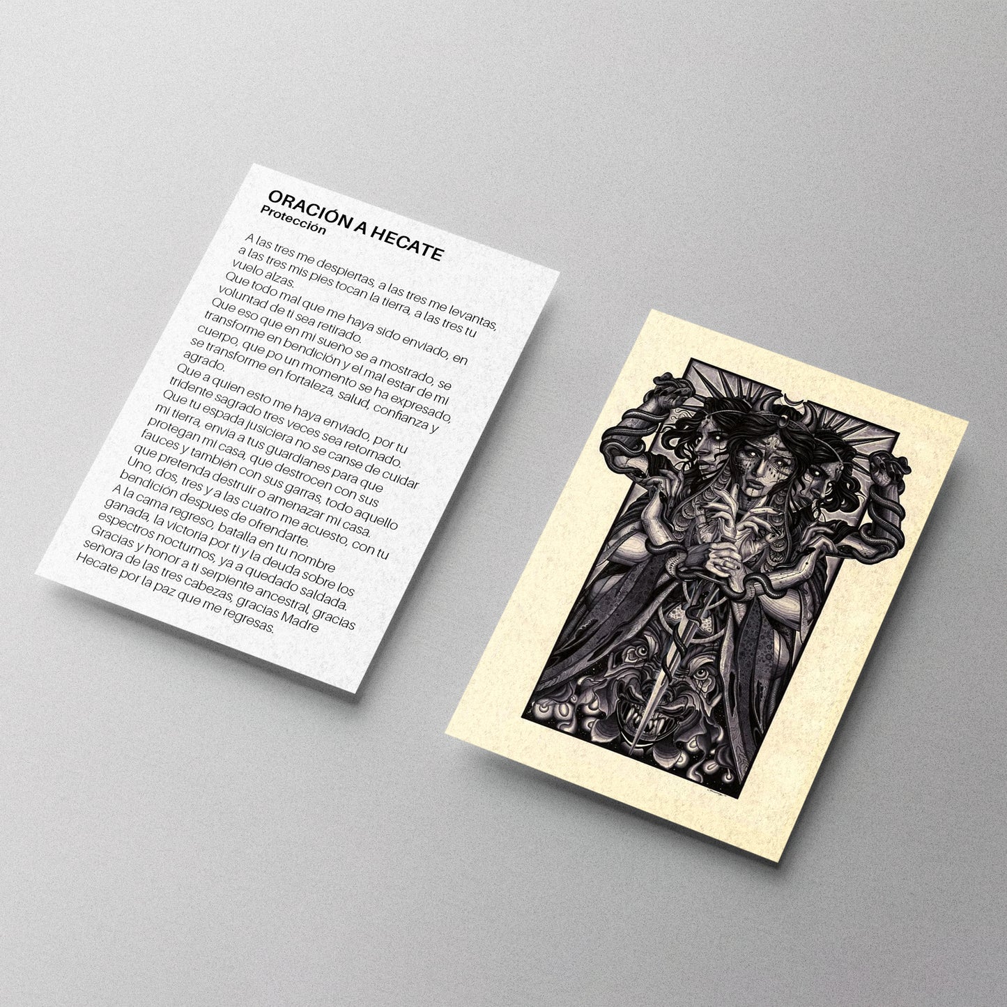 Hécate fue originalmente una diosa griega de Tracia, y gobernó sobre los reinos de la tierra y los rituales de fertilidad. Como diosa del parto, fue a menudo invocada en los ritos de la pubertad, y en algunos casos vigilaba a las doncellas que estaban empezando a menstruar. Finalmente, Hécate evolucionó para convertirse en una diosa de la magia y la hechicería. Fue y es venerada como una diosa madre, y durante el período ptolemaico en Alejandría fue elevada su posición como diosa de los fantasmas y el mundo de los espíritus.