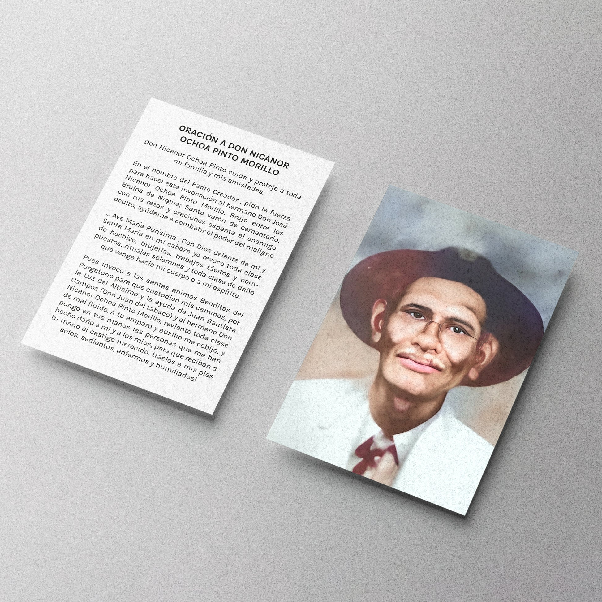 Estampa de don Nicanor Ochoa: Don Nicanor Ochoa es reconocido como un sabio y maestro espiritual en la tradición esotérica. Su imagen en esta estampa representa su presencia protectora y su sabiduría ancestral. La estampa captura la esencia de su energía y se cree que puede brindar beneficios y propiedades esotéricas a quienes la poseen.