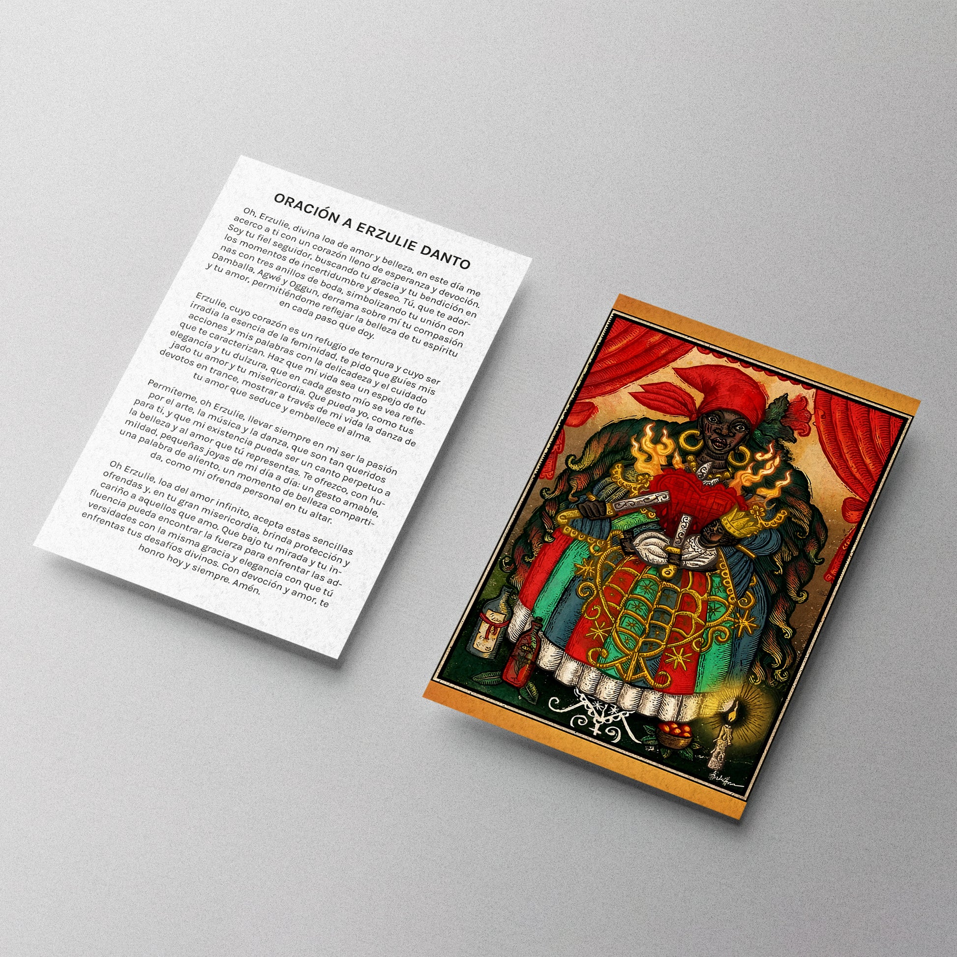 Captura la esencia divina y encantadora de Erzulie, la loa del amor, la belleza y la feminidad en la religión vudú haitiana, con esta exquisita estampa ritualizada. Esta representación única de Erzulie es una pieza esencial para cualquier devoto o coleccionista interesado en profundizar su conexión con las vibraciones de amor y compasión.