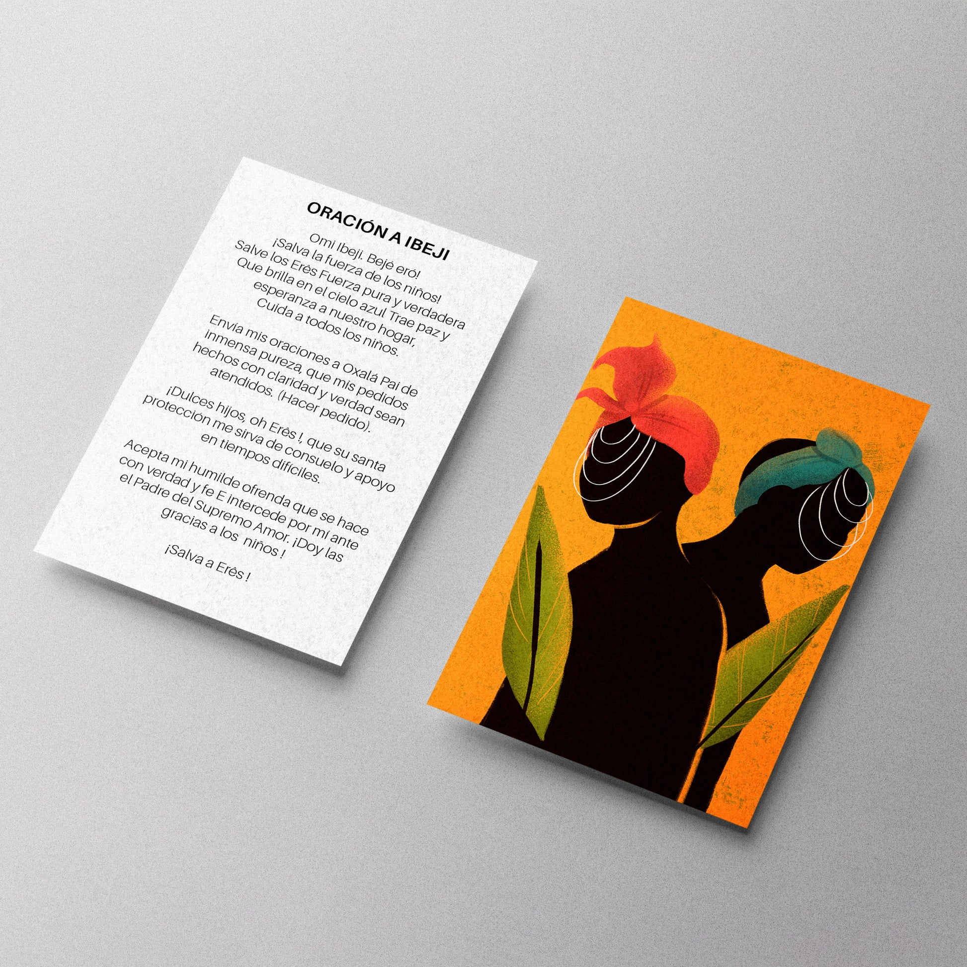 Ibeji es una palabra procedente de los yoruba la que significa “nacimiento doble”, esta se refiere al nacimiento de unos gemelos, hijos de Iansha. Los Ibeji son 2 orishas pequeños pertenecientes a la religión y cultura yoruba, están simbolizados como unos espíritus infantiles que se han relacionado con los comienzos en la vida de los seres vivos, como el nacimiento de un humano, un animal, o bien la germinación de una planta.