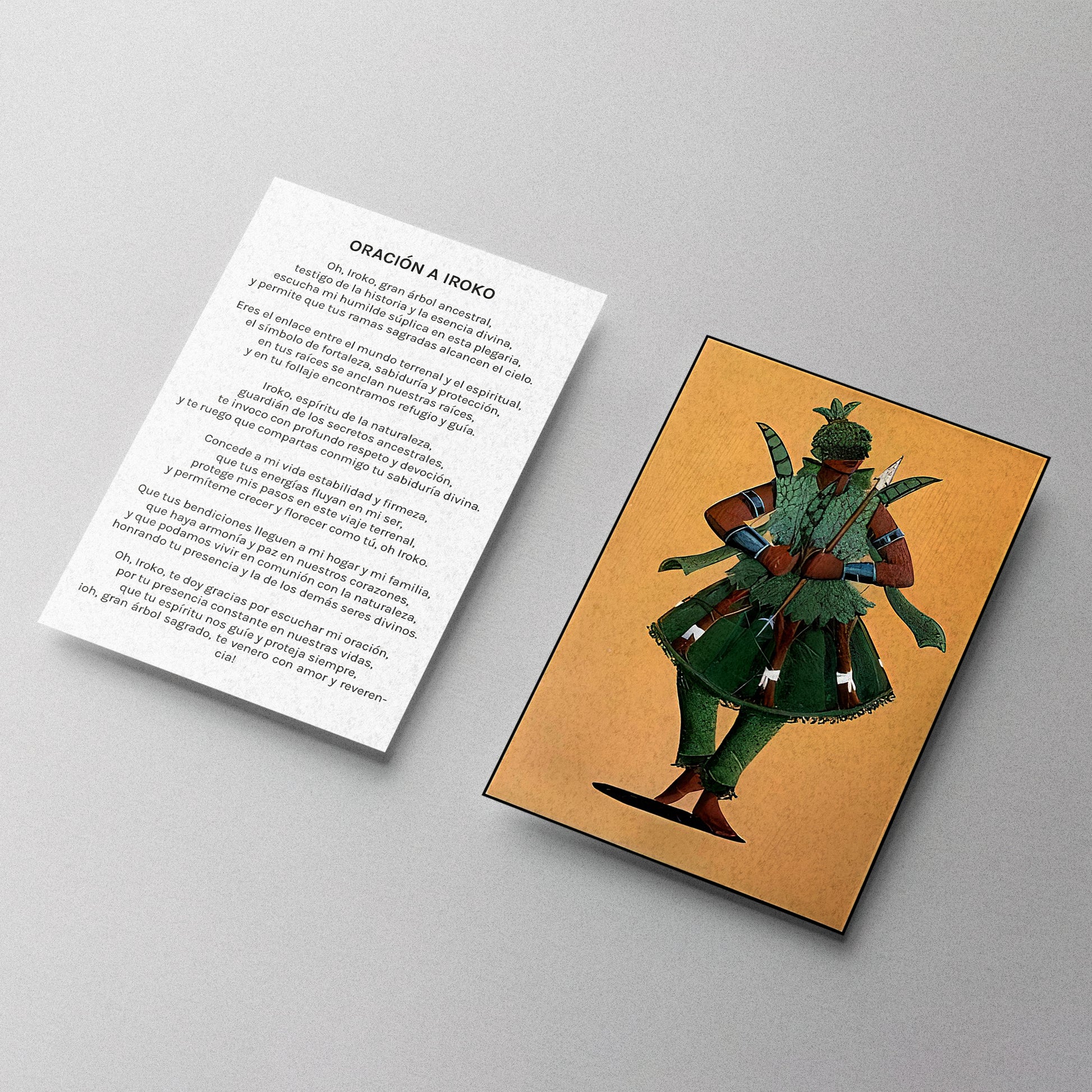 Propiedades esotéricas: Iroko es un árbol venerado en la santería y en muchas otras tradiciones esotéricas. Se le atribuyen poderes espirituales y propiedades protectoras. Según la creencia popular, Iroko es un intermediario entre el cielo y la tierra, un puente entre los seres humanos y los dioses. Se dice que el árbol de Iroko puede otorgar sabiduría, protección, prosperidad y conexión espiritual. La estampa de Iroko se utiliza como un objeto sagrado que puede ser utilizado en rituales, meditaciones o simplemente como una forma de atraer las bendiciones y la energía positiva asociadas con Iroko.