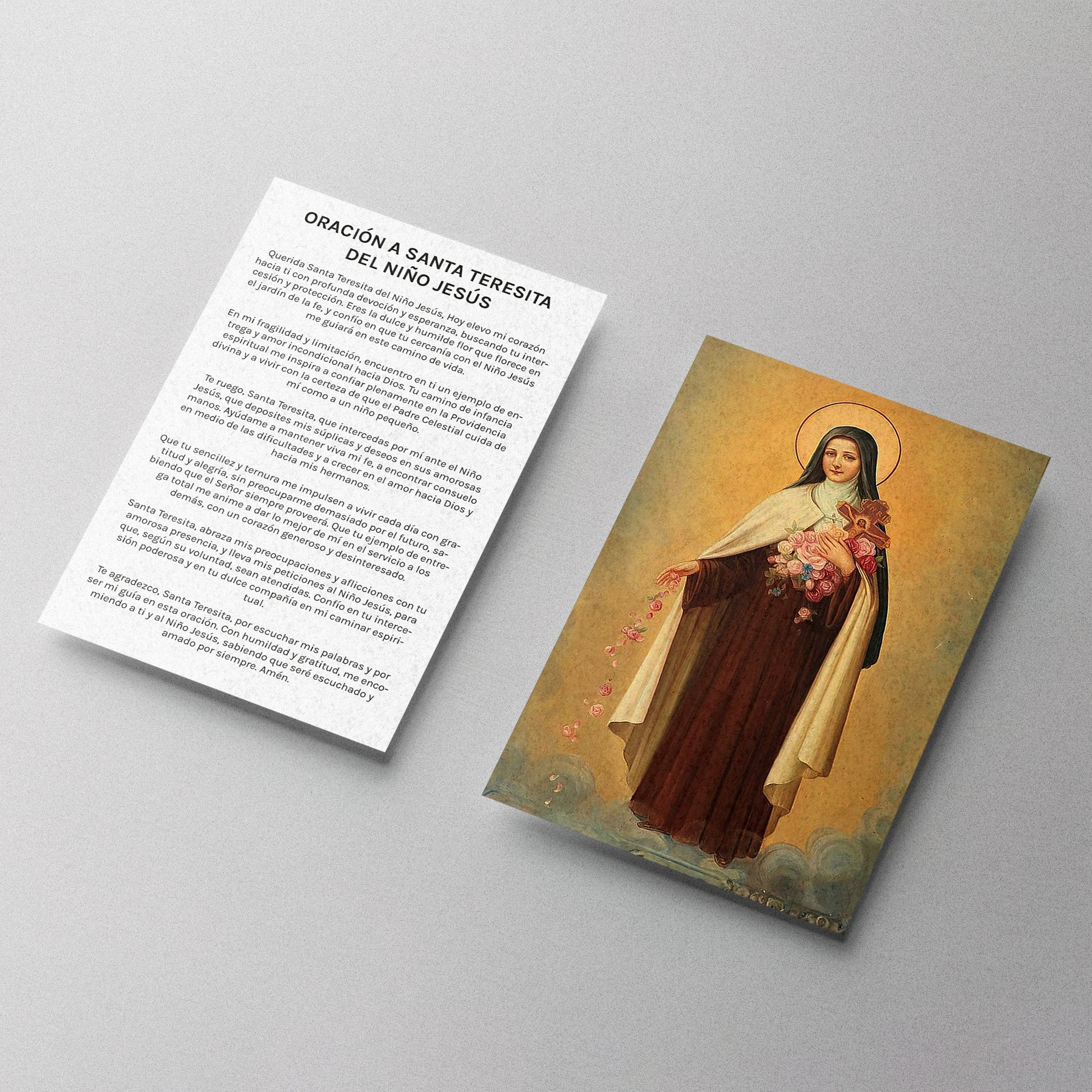 Alta calidad: Nuestras estampas de Santa Teresita del Niño Jesús están impresas con materiales de alta calidad y atención al detalle, garantizando una representación vívida y duradera.