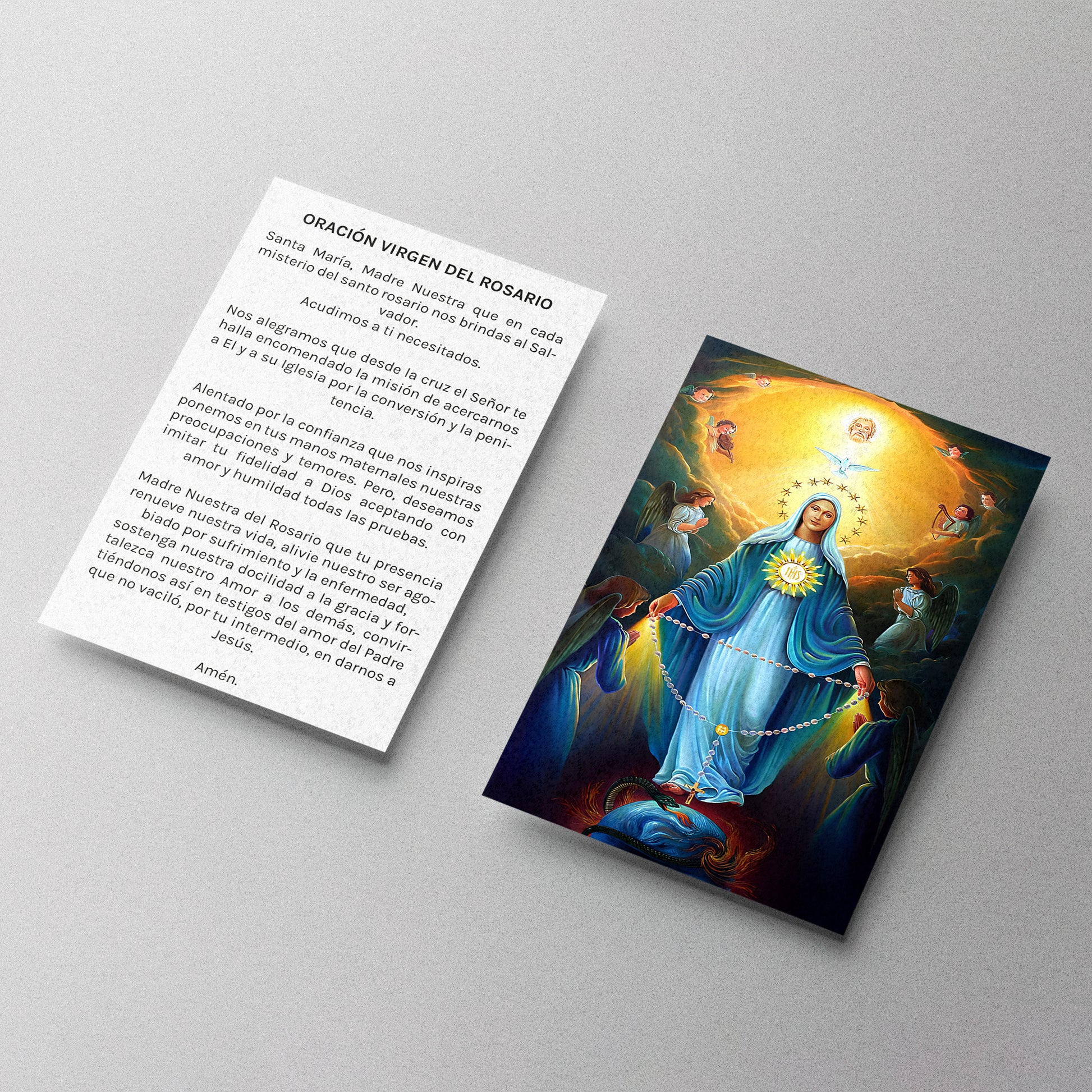 En nuestra tienda online te ofrecemos esta bella estampa de la Virgen del Rosario, que te va a encantar. Porque la vas a poder llevar siempre contigo, obteniendo su gracia divina y su amparo.