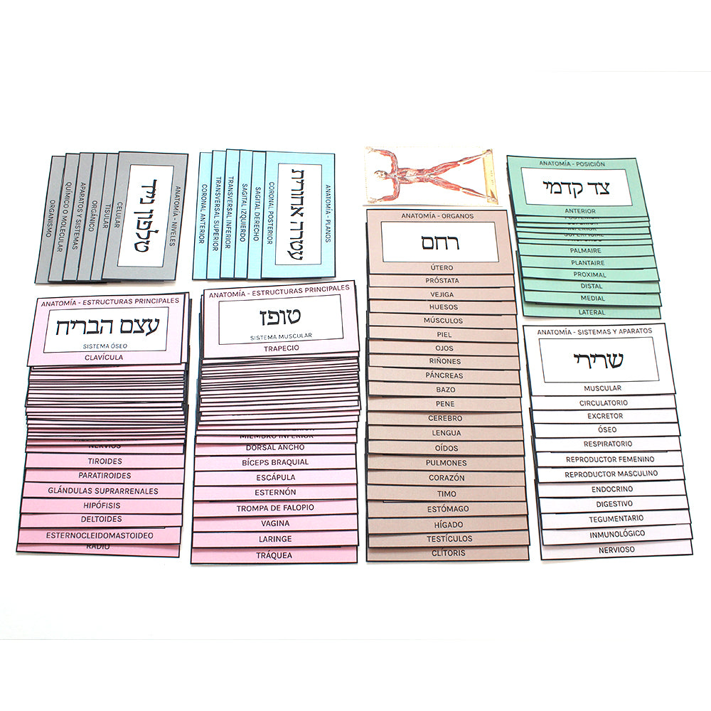 Completísima colección de etiquetas o camisas para péndulo hebreo de la anatomía humana.