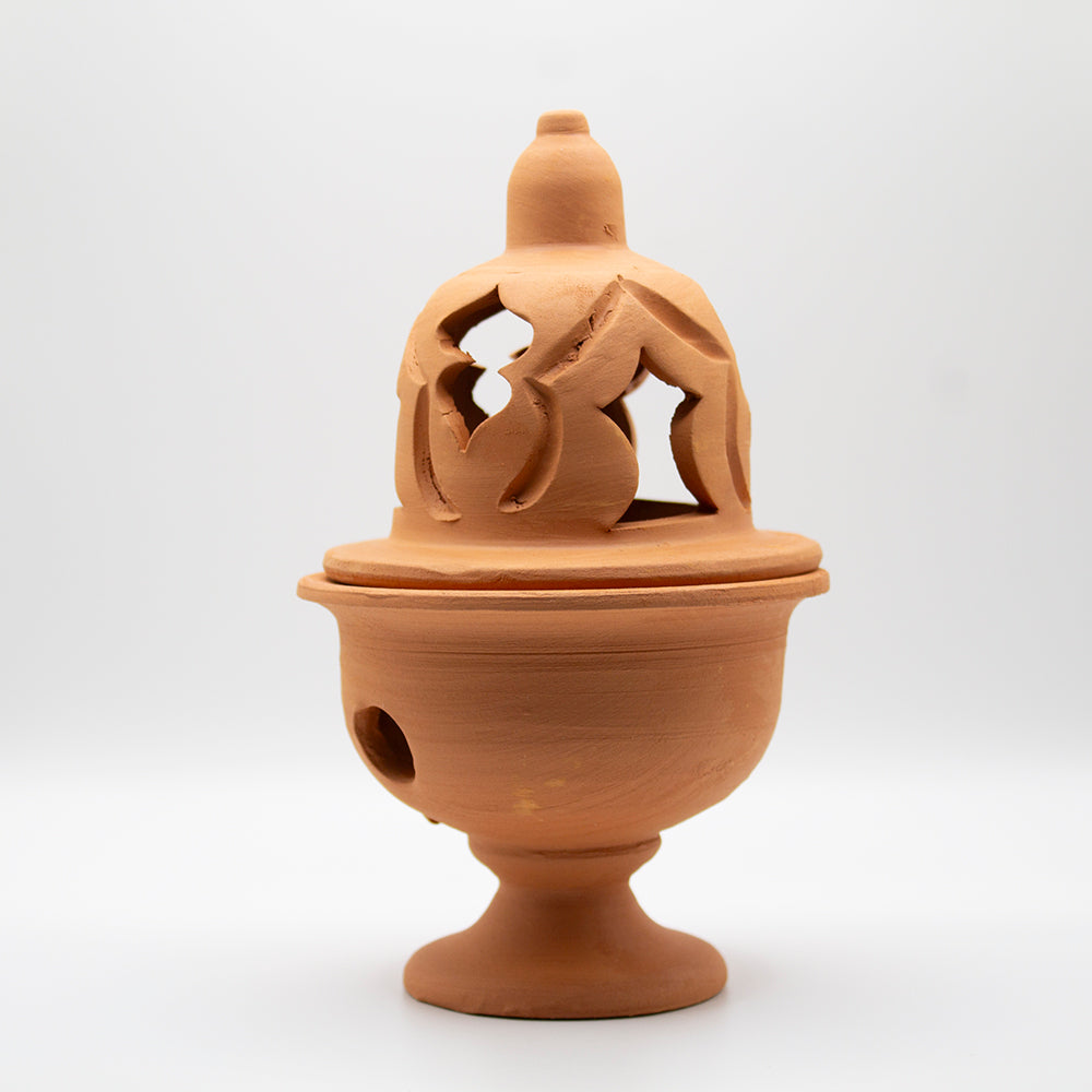 Con calados superiores y un orificio trasero en base para que salga el humo del incienso.