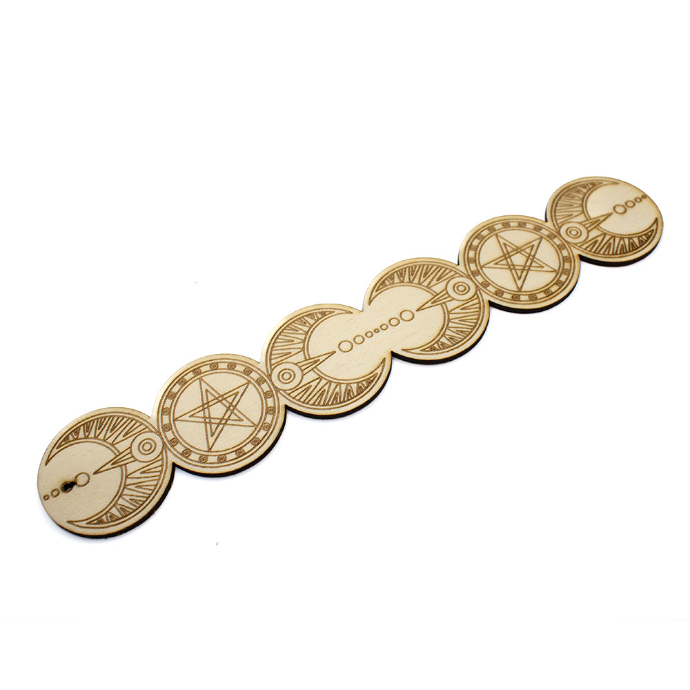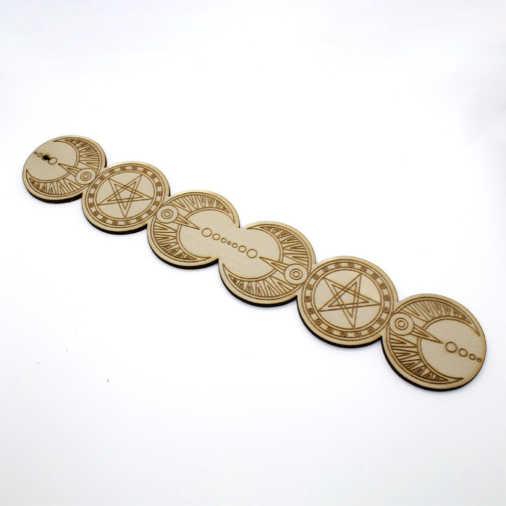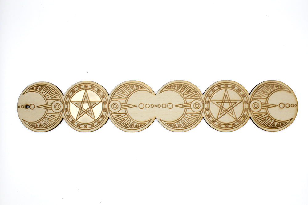 Diseño Único en Madera Grabada: Cada incensario presenta un diseño exclusivo, tallado con precisión en madera de alta calidad. La intrincada grabación resalta símbolos y patrones relacionados con la energía de Hécate, brindando una estética única y cautivadora.