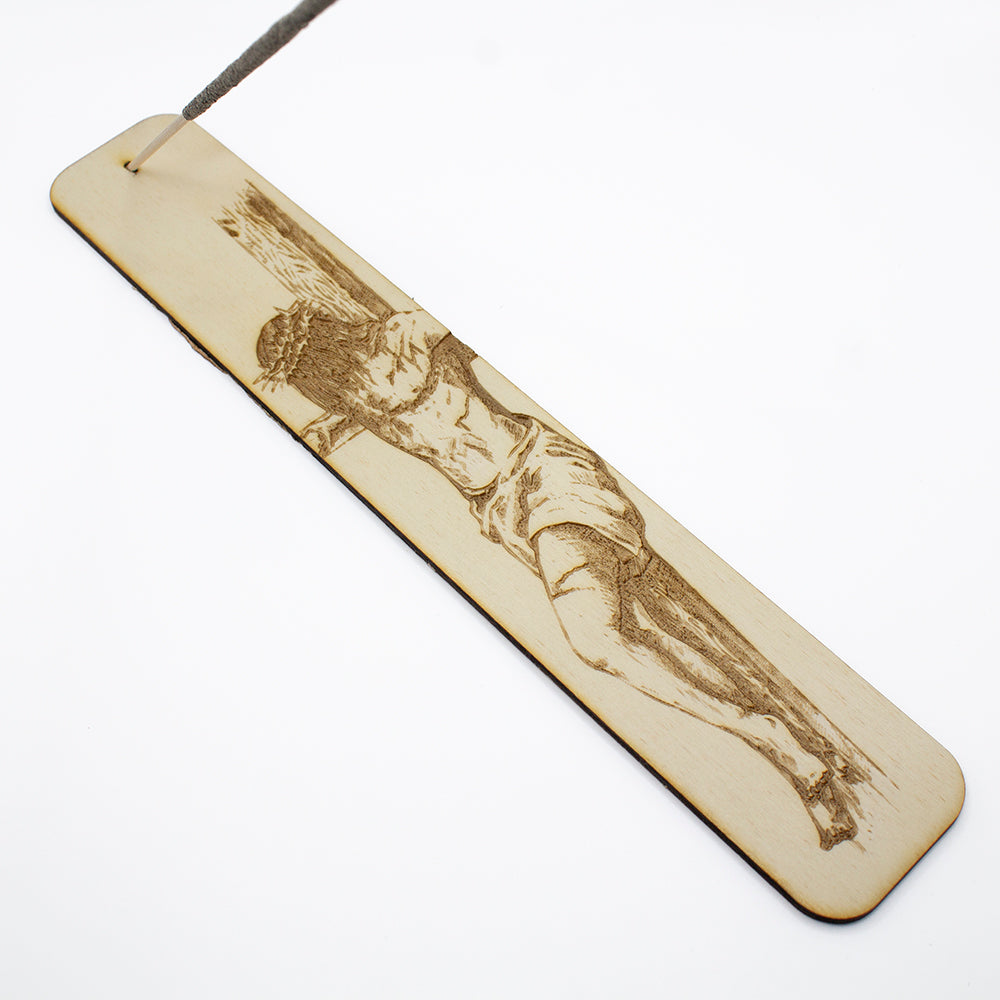 Diseño Exclusivo: La madera grabada del incensario presenta un diseño único que incorpora simbólicamente la figura del Crucifijo, agregando un elemento espiritual y significativo a tus rituales.