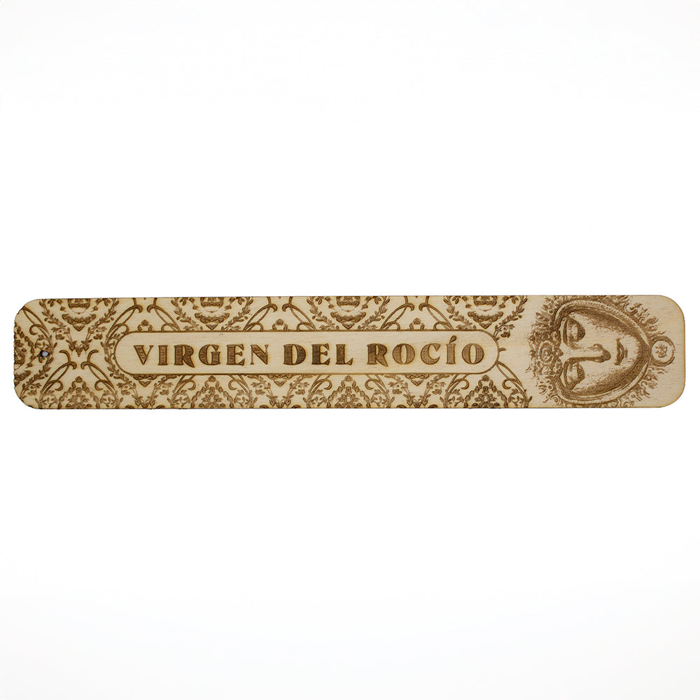 Diseño Exclusivo: El incensario está elaborado en madera grabada con un diseño exclusivo que rinde homenaje a la Virgen del Rocío, lo que lo convierte en una pieza única y especial.