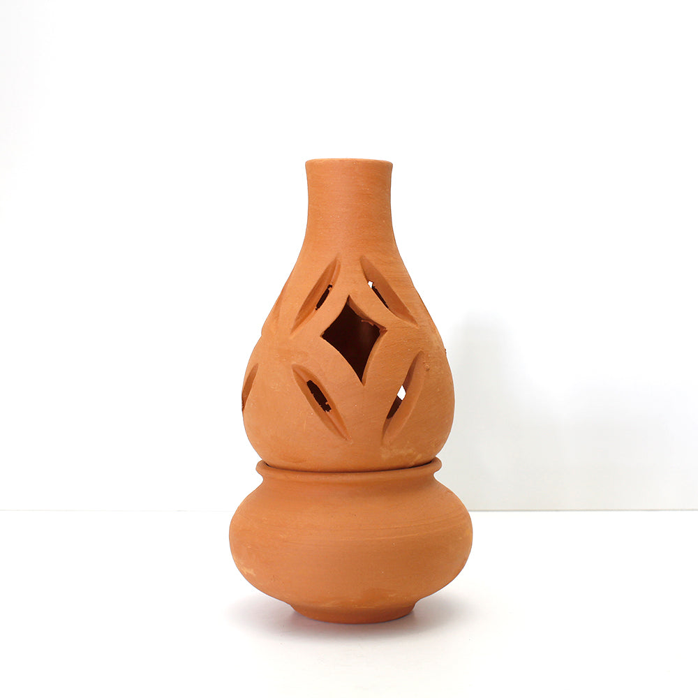 Incensario en barro de dos piezas estilo Quinqué.