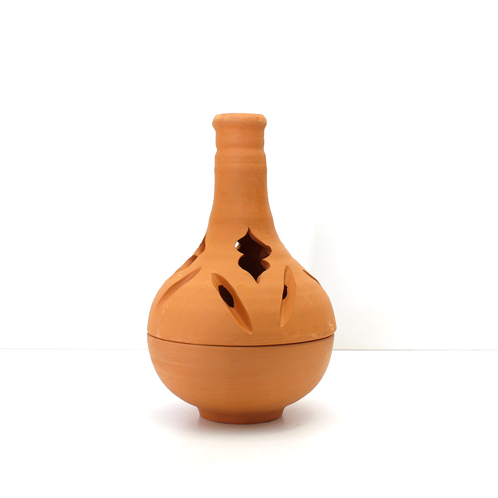 Con calados superiores y un orificio trasero en base para que salga el humo del incienso.