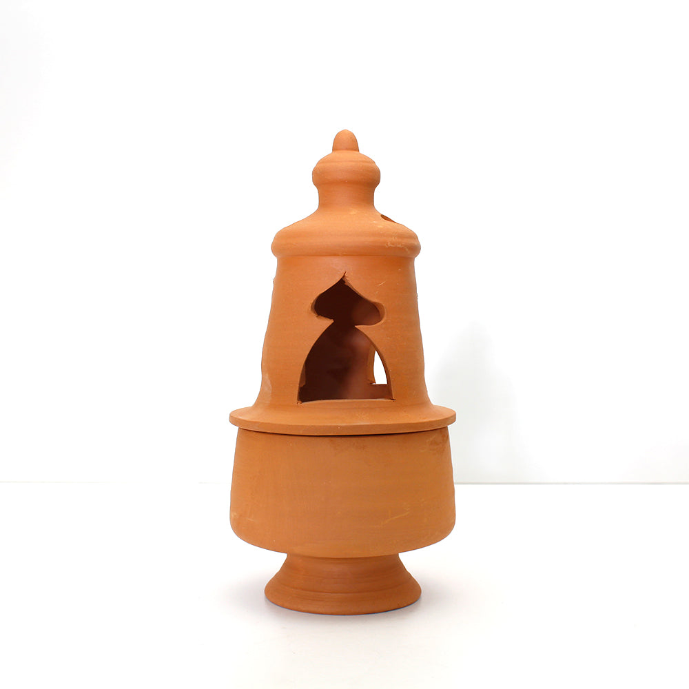 Incensario en barro de dos piezas estilo Torre Minarete.