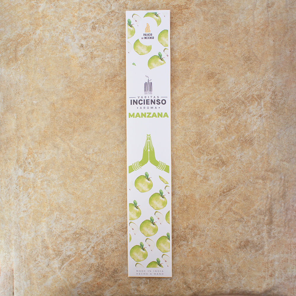 Propiedades Esotéricas: Según las tradiciones ancestrales, el aroma de manzana atrae la paz y la felicidad. Se cree que este incienso promueve un ambiente de armonía y rejuvenecimiento, ideal para la meditación y la relajación.