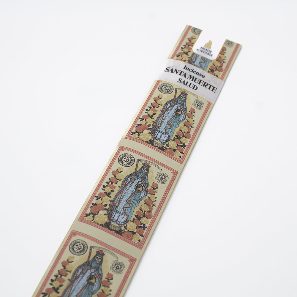 Sumérgete en la poderosa esencia de la Santa Muerte con nuestro exclusivo Incienso diseñado para atraer la salud. En Palacio de Incienso, cada varilla es una obra maestra ritualizada y creada a mano para brindarte una experiencia esotérica única.