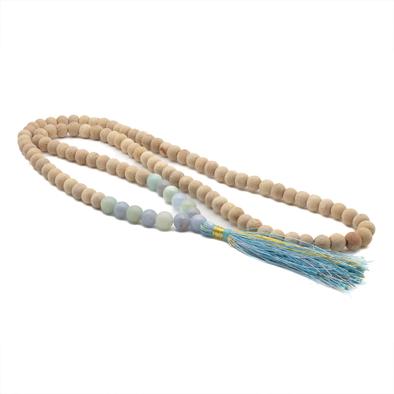 JAPA MALA BUDISTA 108 CUENTAS DE TULSI CON ANGELITA Y AMAZONITA