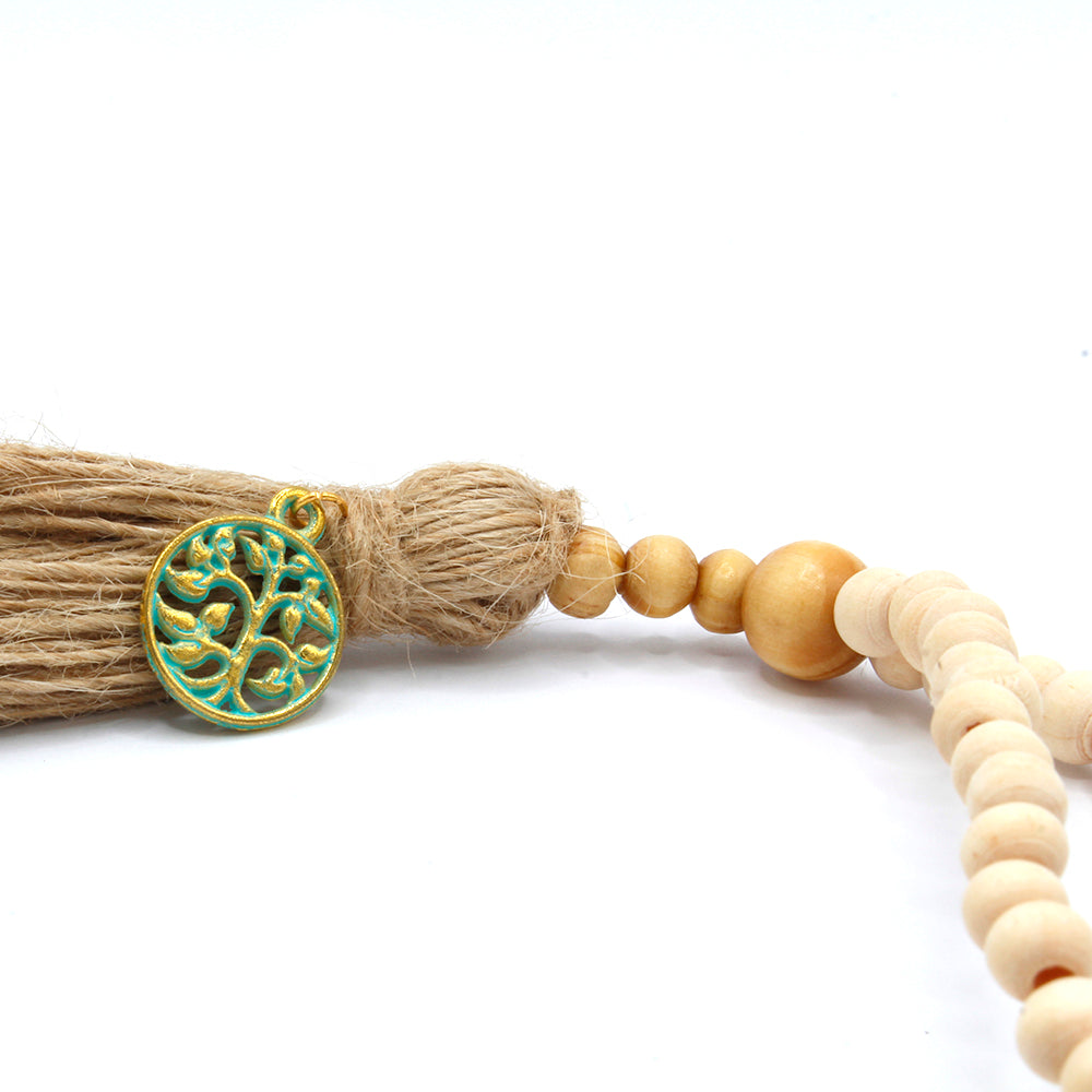 Concentración y enfoque: Las cuentas de madera se utilizan para contar repeticiones de mantras, afirmaciones o respiraciones durante la meditación. Ayudan a mantener el enfoque y la concentración en el presente, facilitando así un estado de calma y claridad mental.