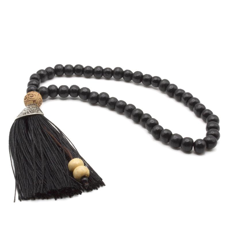 Mala de 45 cuentas de madera negra con borlón, ritualizado para meditación y protección energética