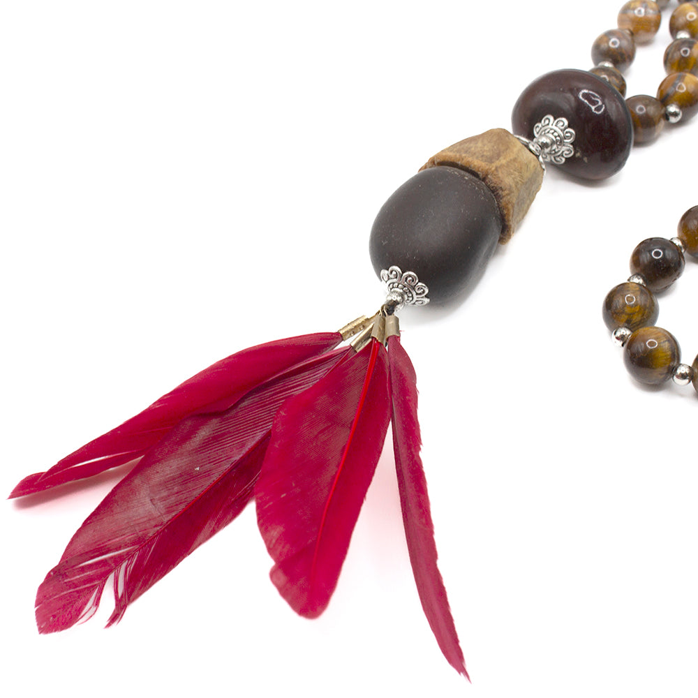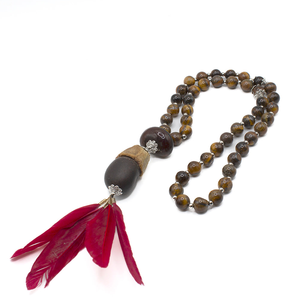 El mala acaba en su extremo con dos semillas africanas y plumas.