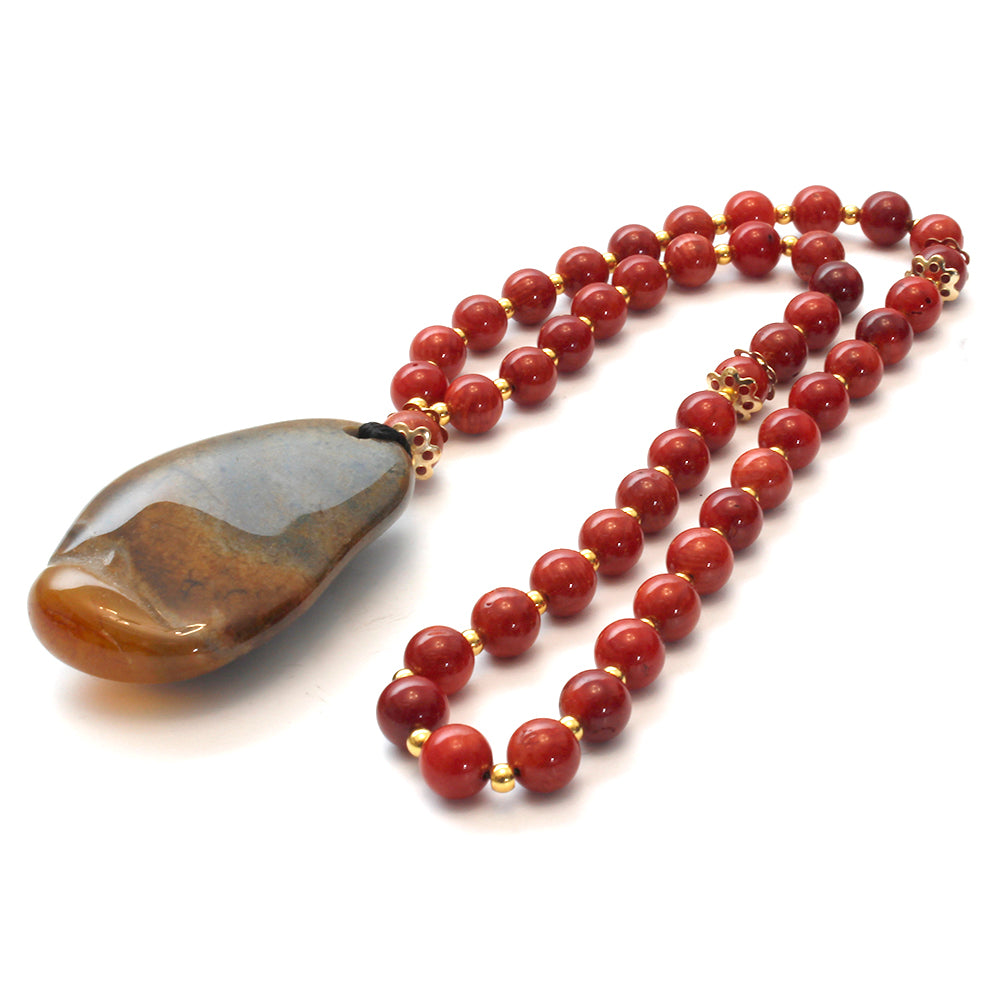 MALA 45 CUENTAS PIEDRA PRECIOSA CORAL Y AGATA