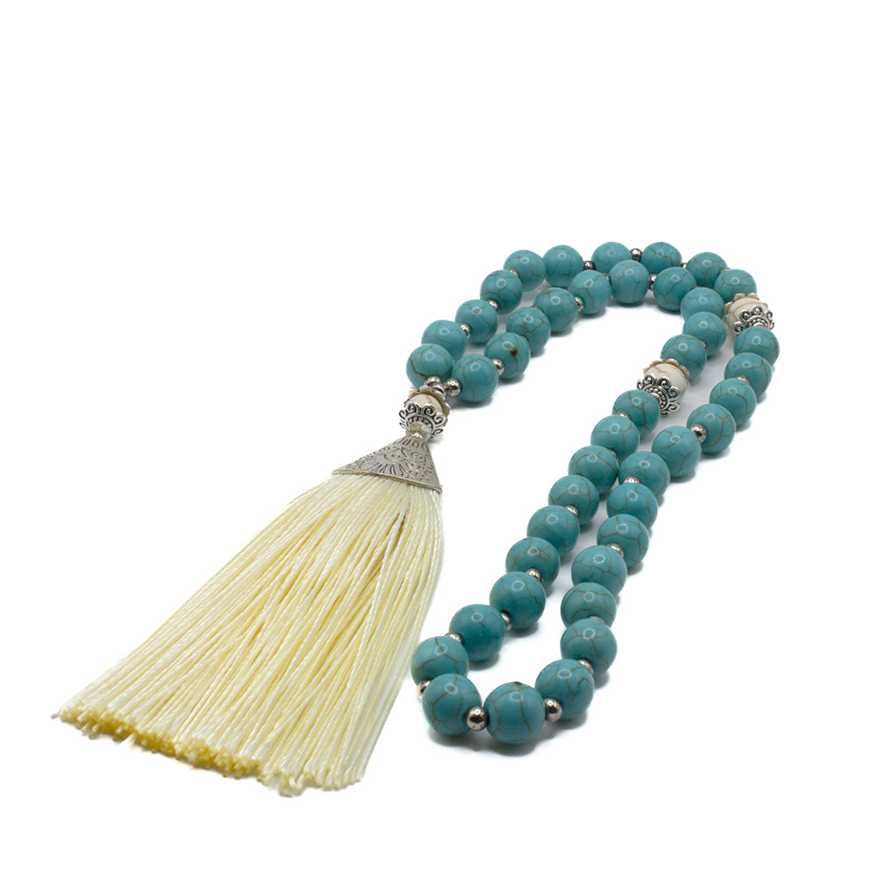 Esta mala contiene auténtica piedra preciosa Turquesa 100% natural y piedras preciosas Turquesa blanca .