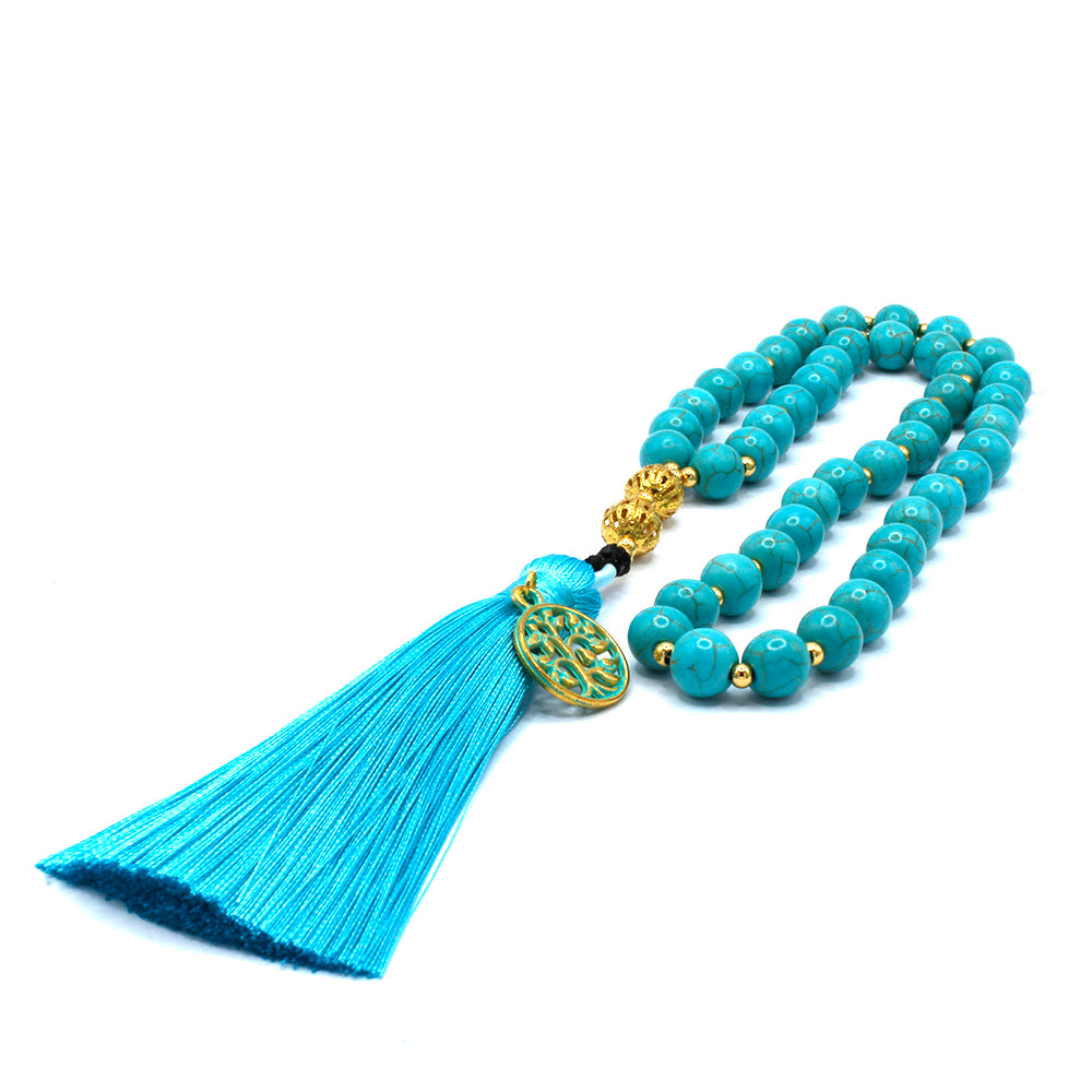 MALA 45 CUENTAS TURQUESA Y ÁRBOL DE LA VIDA